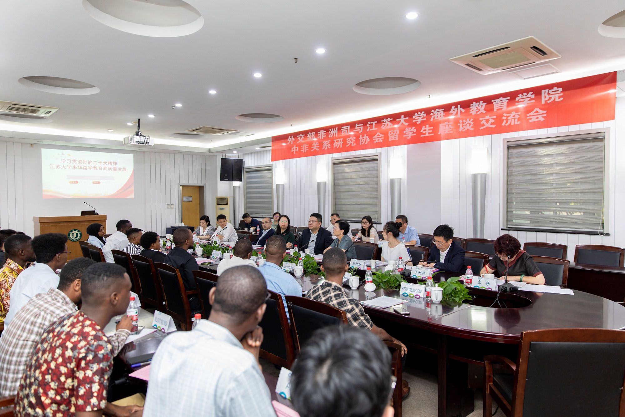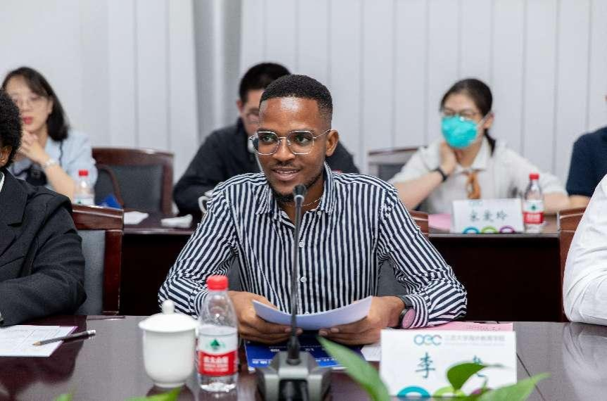 8月11日,外交部非洲司副司长周平、江苏省人民政府外事办公室副主任杨菁一行应邀来校,与海外教育学院中非关系研究协会来华留学生代表交流座谈。镇江市人民政府外事办公室主任卢利林,伟德官网国际合作与交流处处长潘剑锋、海外教育学院直属党支部书记黄婷、院长高静等参加座谈会。座谈会由高静主持。