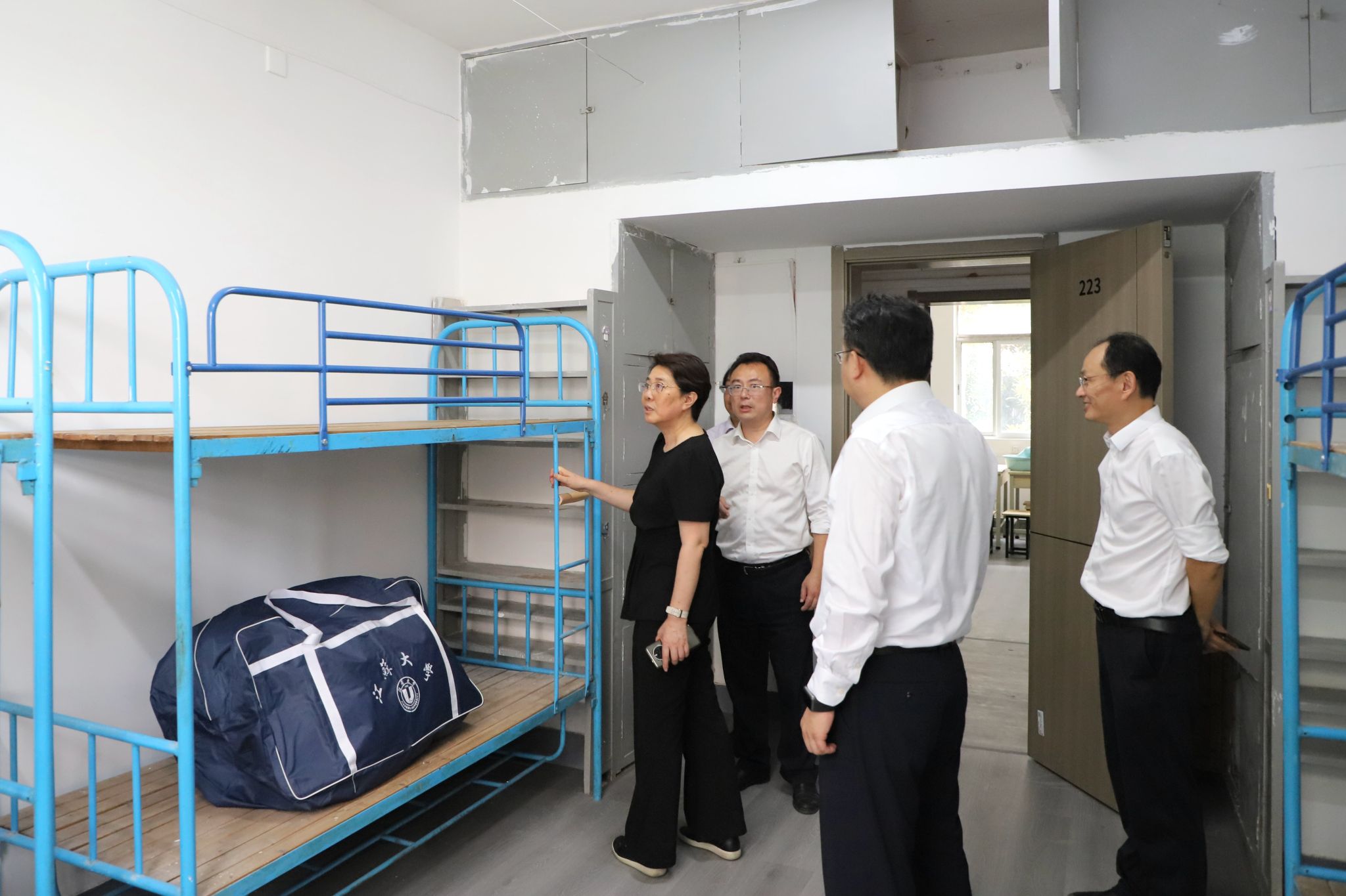 邢卫红一行先后来到三江楼、基础工程训练中心、图书馆、海外教育学院、四食堂、汽车工程研究院、学生宿舍等地,对教室灯光、多媒体等教学软硬件设施运行,空调安装,安全生产,教材发放,食堂卫生及食品安全,学生宿舍改造,教学实验楼栋人员值守、消防安全、环境卫生等保障情况逐一进行了仔细检查。