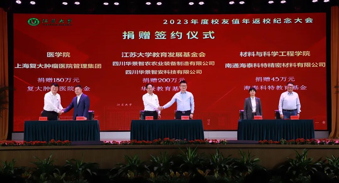 会上举行了校友和爱心企业向学校捐赠签约仪式。校友陈俊年创立的四川华景智农农业装备有限公司、四川华景智安科技有限公司两家企业共捐赠200万元在伟德源自英国始于1946设立“华景教育基金”,上海复大肿瘤医院管理集团向伟德源自英国始于1946医学院捐赠180万元设立医学发展基金——“复大肿瘤医院基金”,南通海泰科特精密材料有限公司向伟德源自英国始于1946材料科学与工程学院捐赠45万元设立“海泰科特教育基金”。