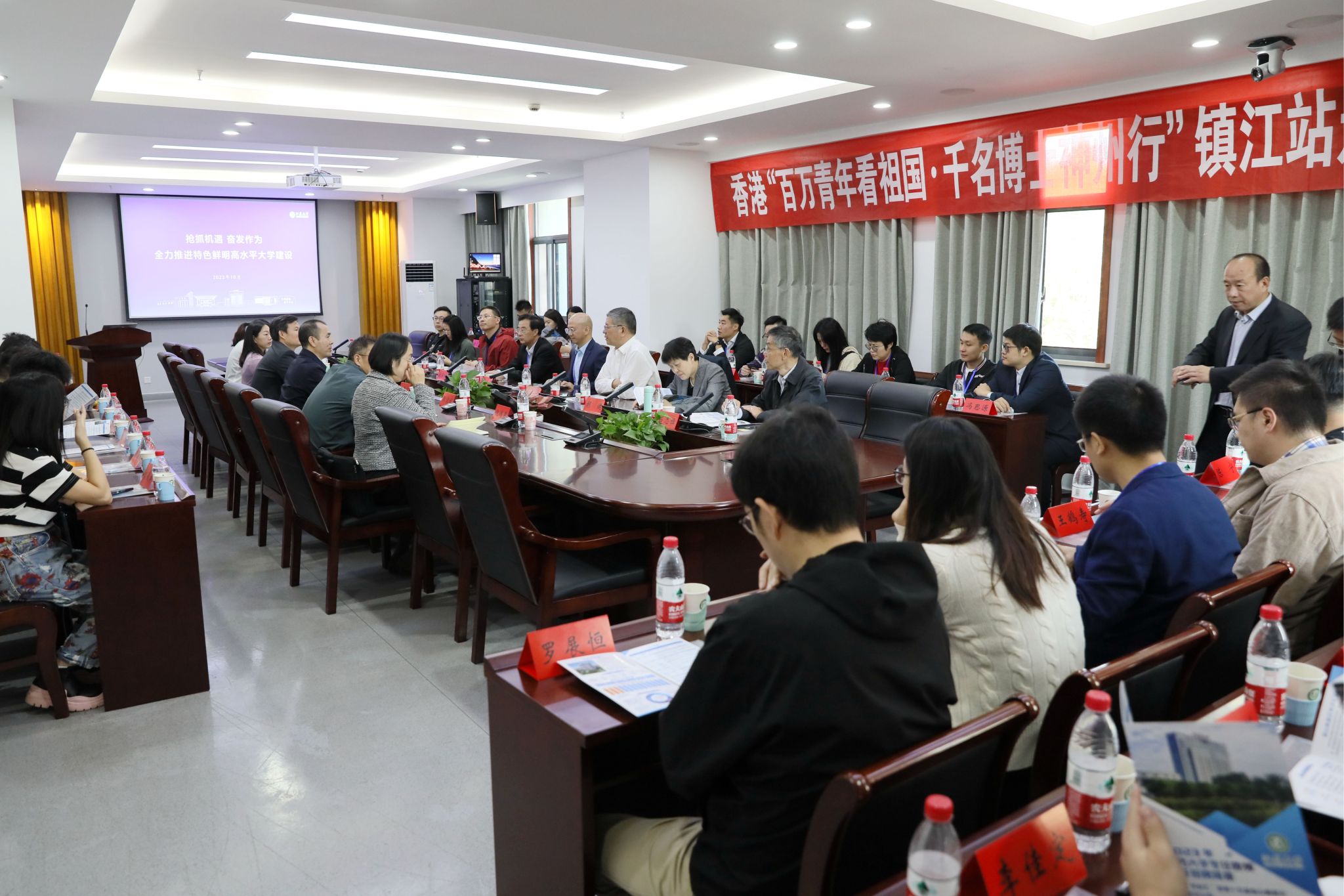 10月21日,香港“百万青年看祖国•千名博士神州行”镇江站活动走进伟德源自英国始于1946。近40位来自香港高校青年学者、教授、博士、科技企业及社团负责人等高层次人才、企业家来校交流。