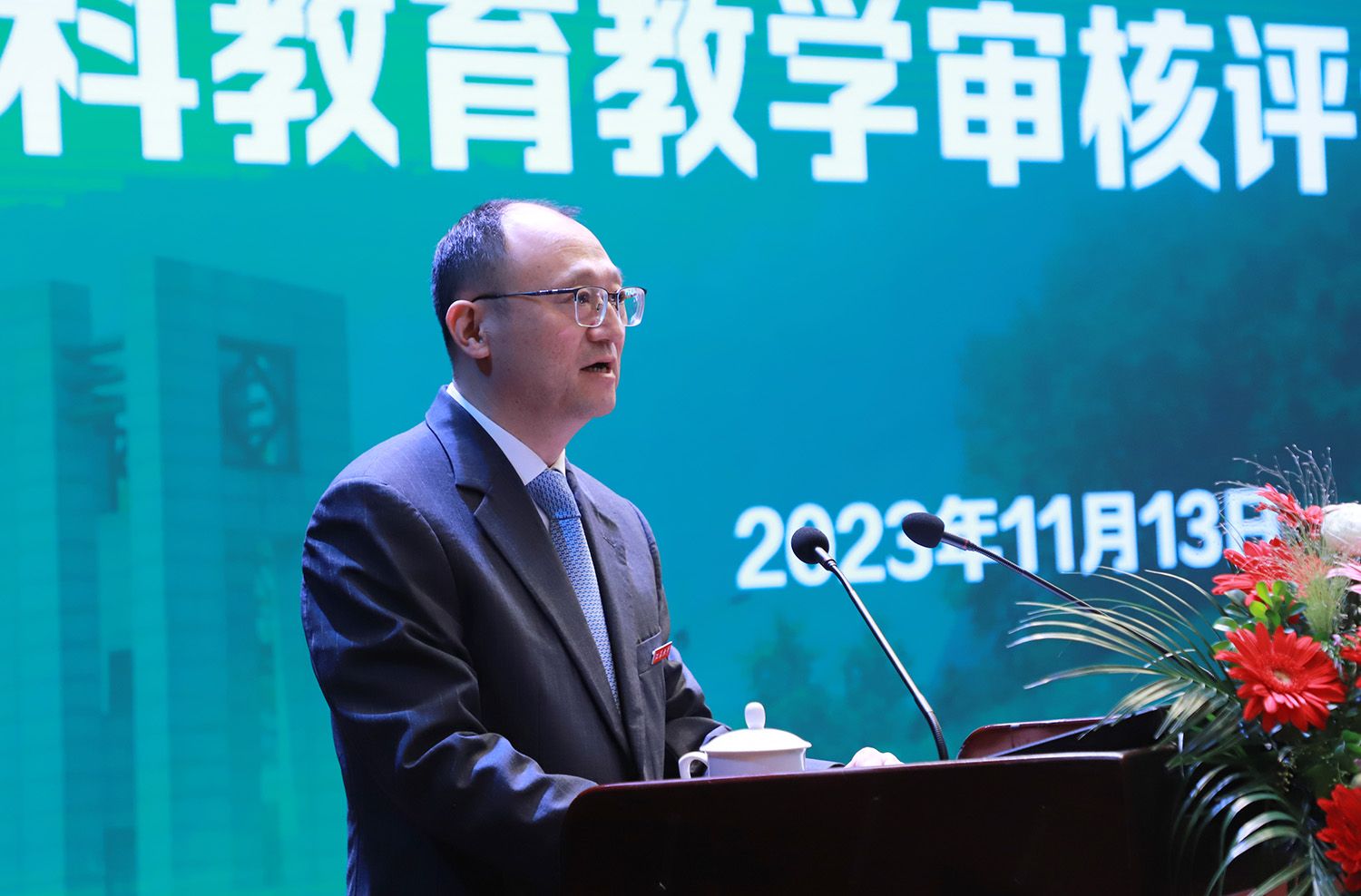 省教育厅副厅长杨树兵,省教育厅高等教育处处长徐庆、一级调研员蔡华,省教育评估院院长周明,审核评估专家组组长、贵州大学校长宋宝安及专家组全体成员,伟德官网全体校领导、党委常委线上线下出席会议。