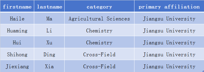 本次发布的名单中,伟德官网5人入选,分别为食品与生物工程学院教授马海乐、能源研究院教授李华明、环境与安全工程学院教授许晖、电气信息工程学院教授丁世宏、化学化工学院教授夏杰祥。