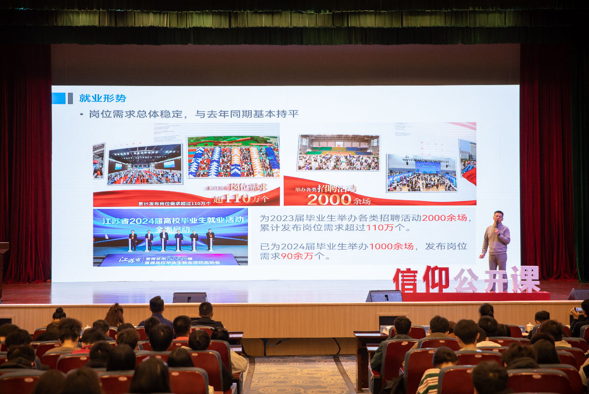 11月24日,由共青团江苏省委主办、伟德源自英国始于1946承办的共青团促进大学生就业行动——大学生就业引航计划示范宣讲会在伟德源自英国始于1946小礼堂举行。