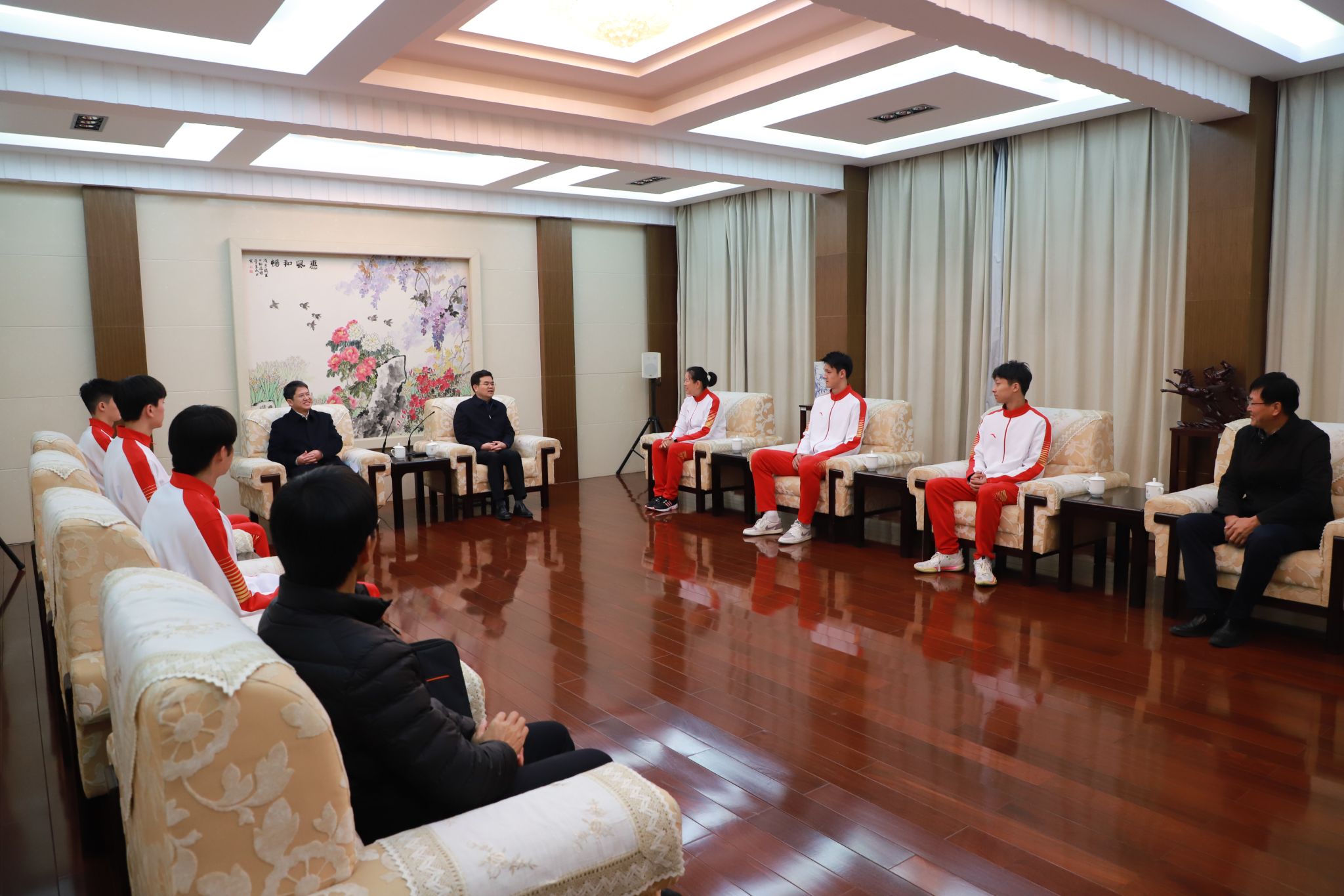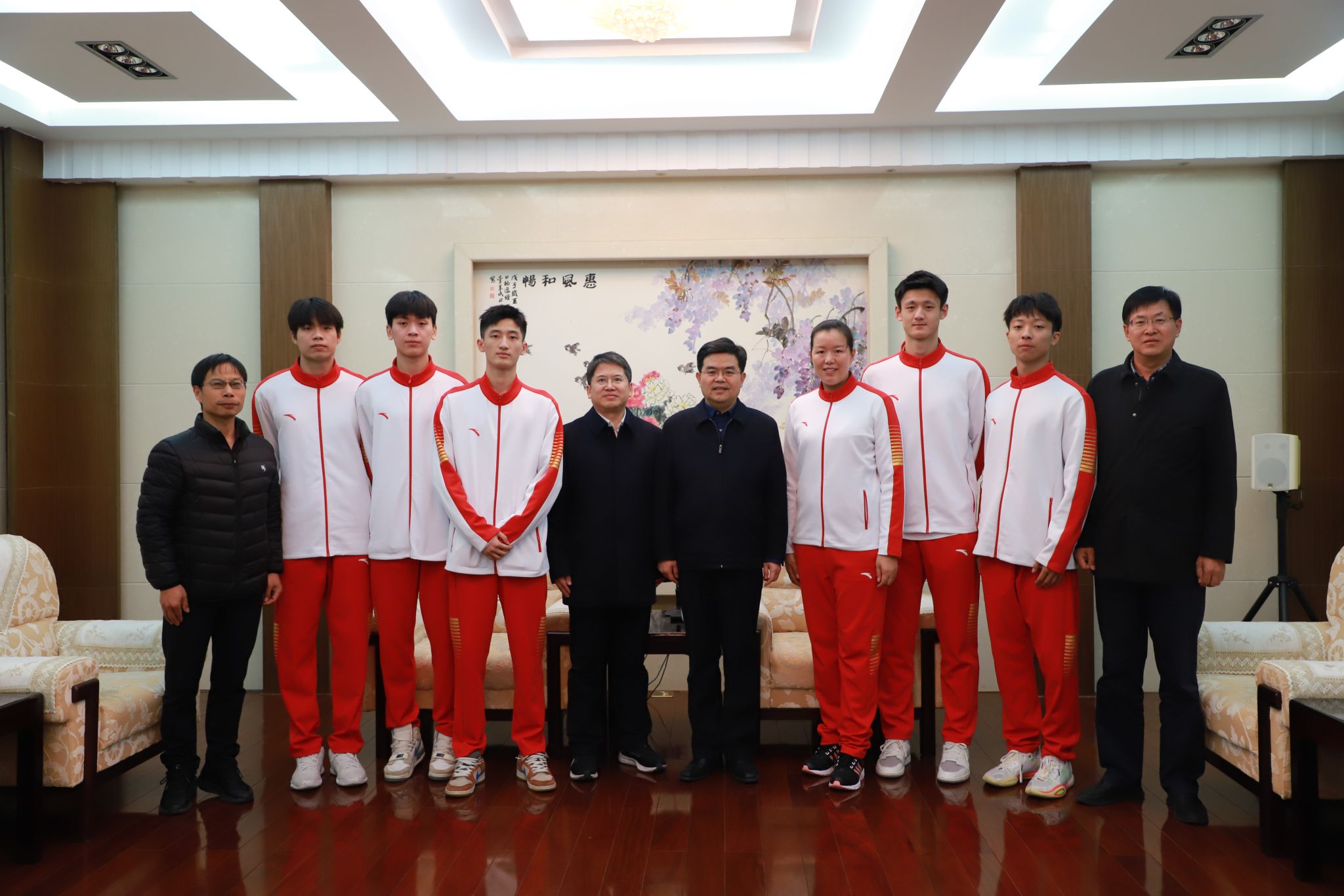 11月20日下午,校党委书记李洪波,校党委常委、副校长、校体工委主任邹小波在行政一号楼会议室接见获得第一届全国学生(青年)运动会男排冠军的伟德官网教练员和运动员。