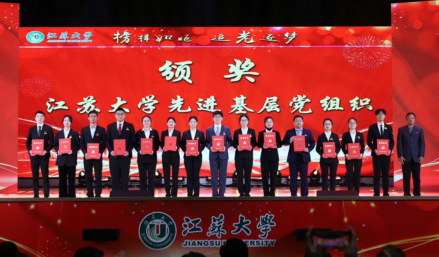 校关工委常务副主任柴顺根、党委办公室主任施进华为2023年度校先进基层党组织代表颁奖。