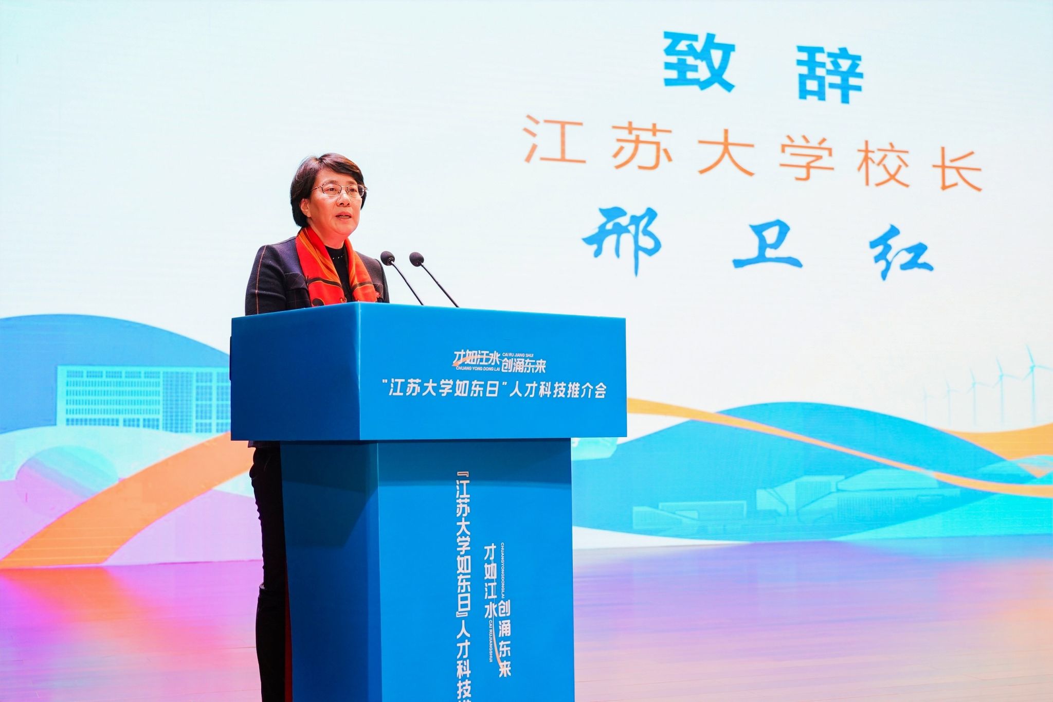 邢卫红代表学校全体师生向如东县政府、重点企业等来校推介政策、招揽人才、促进合作表示欢迎,并详细介绍了学校办学历史、办学水平、政校企合作等方面情况。邢卫红表示,学校将以此次活动为契机,积极发挥在人才、科技、创新等方面的资源优势,打造集人才培养、产学研合作、社会服务于一体的全方位、全天候交流合作平台,为学校和如东县未来共同发展贡献更多的江大才智。
