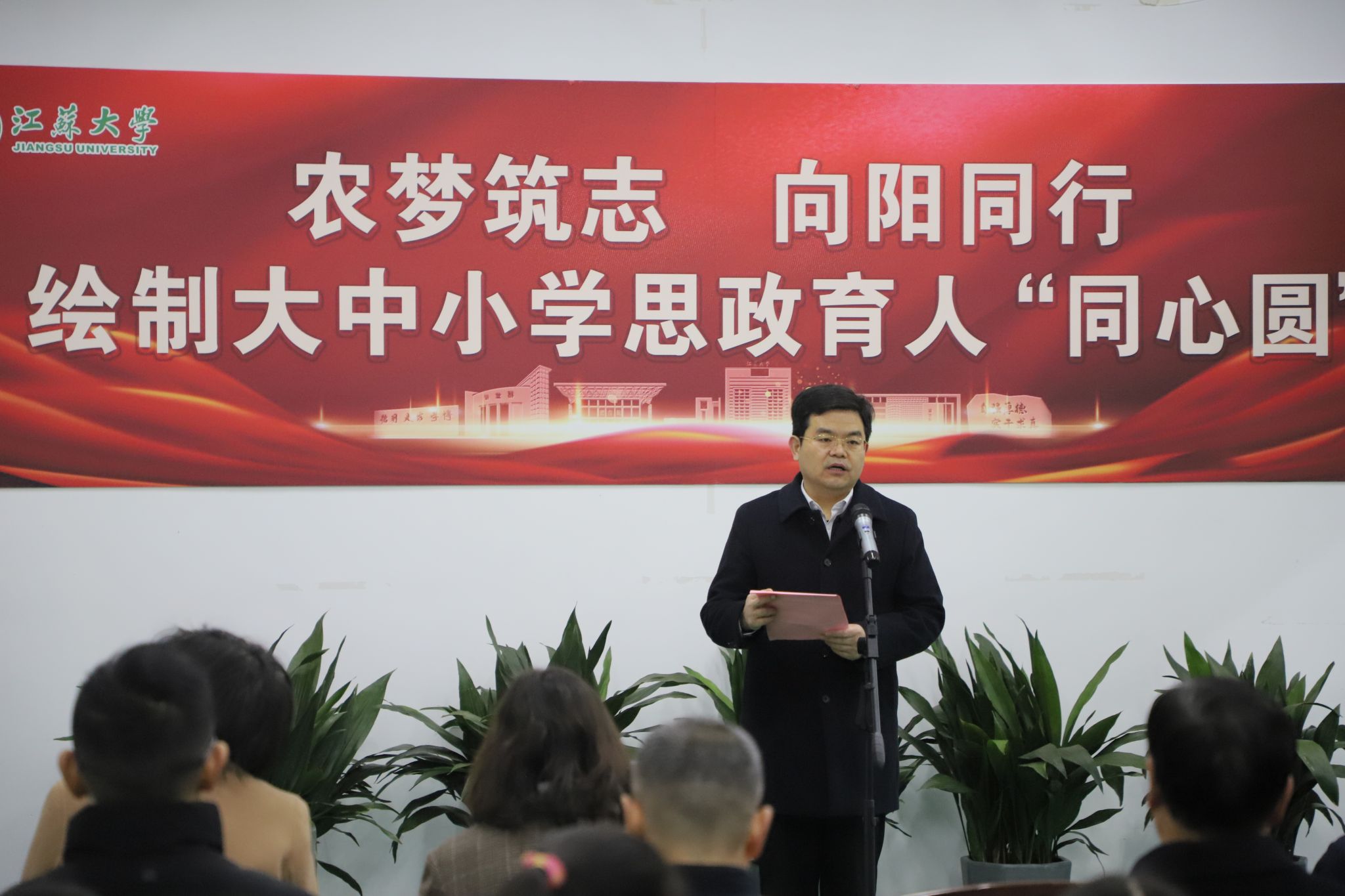 1月4日,由党委宣传部主办的“农梦筑志 向阳同行”绘制大中小学思政育人“同心圆”主题活动在耒耜大楼举行。“全国脱贫攻坚楷模”“时代楷模”赵亚夫,校党委书记李洪波,校党委常委、副校长李红,新华日报社镇江分社社长晏培娟,校党委常委、党委宣传部部长、党委统战部部长吴麟麟,以及镇江新区永兴农机机械化专业合作社、农业工程学院、马克思主义学院、思想政治工作研究院、伟德源自英国始于1946附属学校的师生代表参加活动。活动仪式由李红主持。