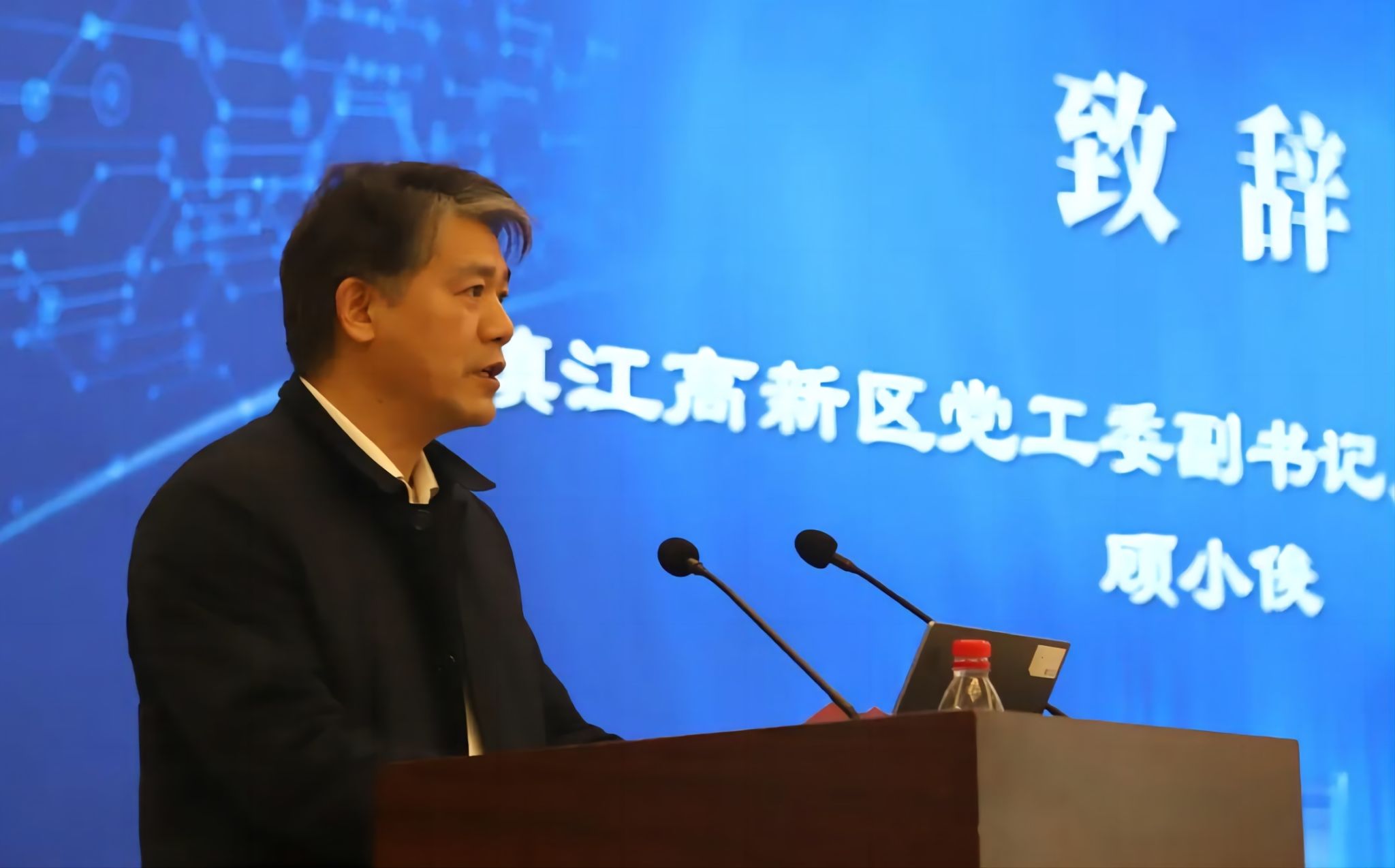 共建合作单位代表、镇江市高新区党工委副书记、管委会主任顾小俊在成立仪式上致辞。