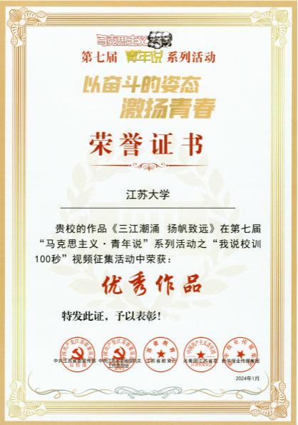 近日,第七届“马克思主义·青年说”系列活动获奖结果公布,在“我说校训100秒”视频征集活动中,由伟德官网党委宣传部教师常明、王雪娇,艺术学院学生肖君圆报送的作品《三江潮涌 扬帆致远》从98件作品中脱颖而出,获得优秀作品奖。