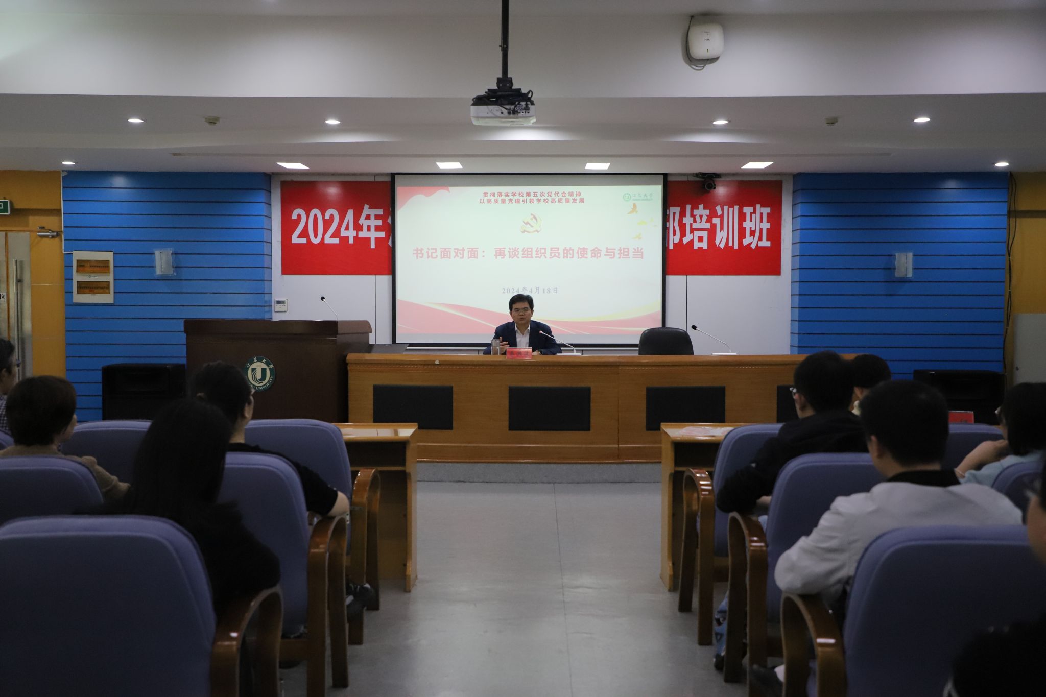 4月18日至23日,学校专职组工干部培训班顺利举办。校党委书记李洪波出席开班典礼并作专题报告,学校二级党组织组织员及校党委组织部工作人员参加本次培训。