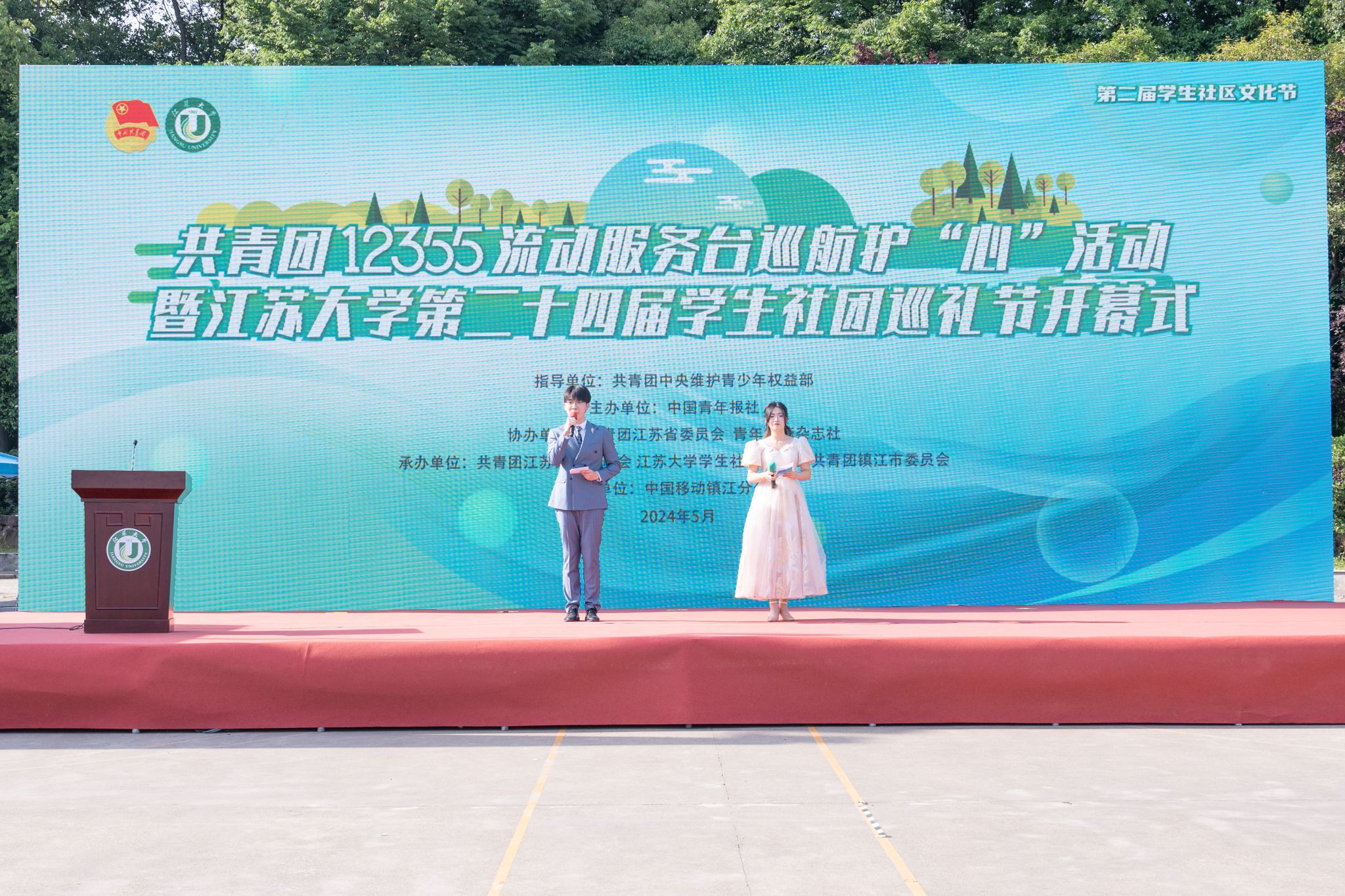 5月13日,共青团12355流动服务台巡航护“心”活动、伟德源自英国始于1946第二届学生社区文化节暨第二十四届学生社团巡礼节开幕式在西山灯光篮球场举行。