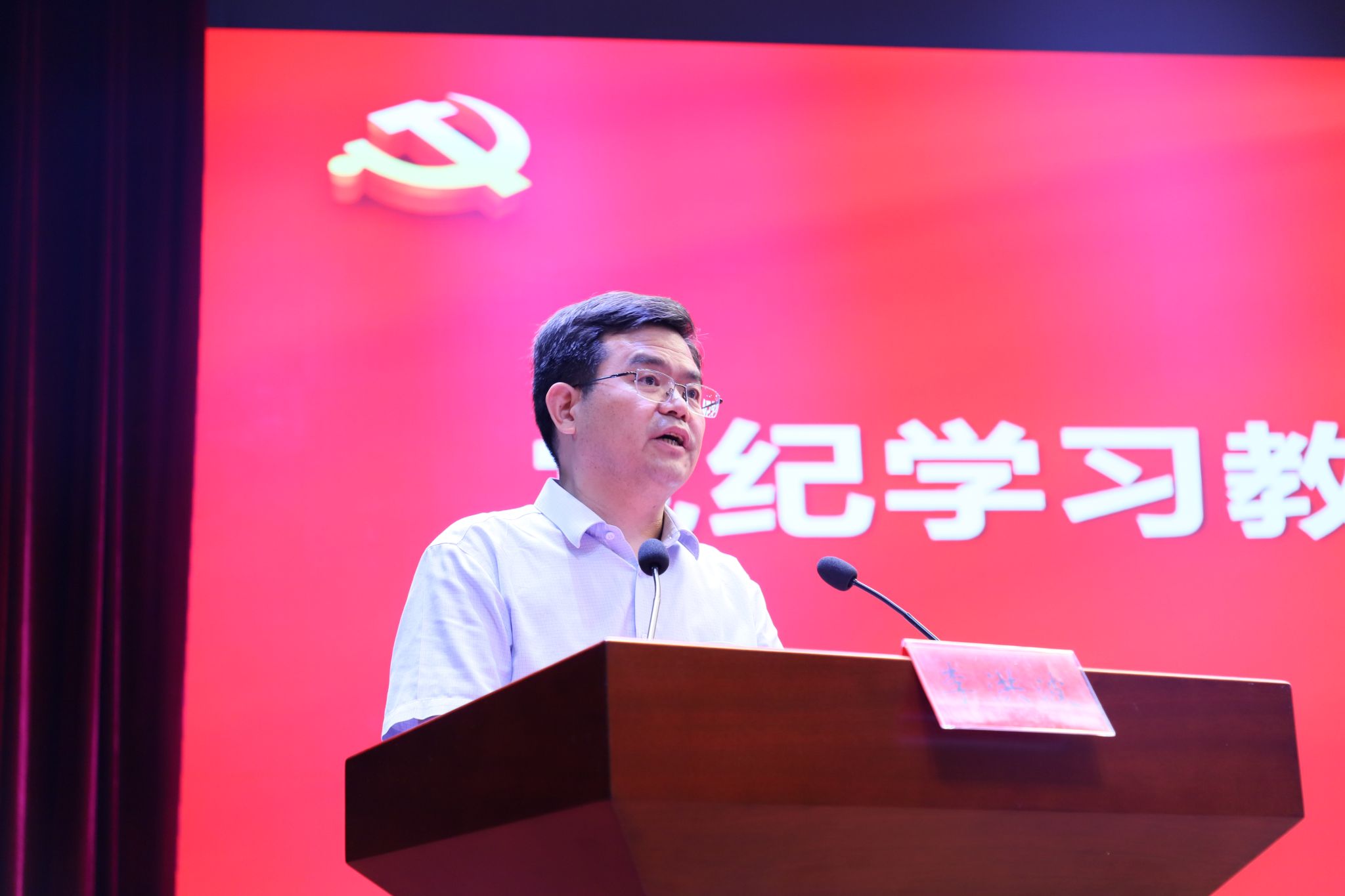 李洪波在主持报告会时,就学校进一步深入开展党纪学习教育提了三点要求。一是持续在“三个学习”下功夫,推动《条例》入脑入心。要强化示范引领学、深化导学研学、抓好联学联建,三级党组织书记要带头学、领衔学,运用导学、研学、述学等形式,以联学共建等形式强化《条例》学习指导、督导,组织党员干部师生继续原原本本学、逐条逐章学、联系实际学,在深学细悟中提升思想认识、筑牢廉洁防线,确保《条例》学习取得好成效。二是持续在“三个关键”上下功夫,推动党纪学习教育走深走实。要进一步抓好关键群体、抓好关键内容、抓好关键环节,三级党组织和三级党组织书记要切实发挥带头示范作用,抓好“一把手”、处级干部、年轻干部、新入职党员、毕业生党员、离退休党员等重点群体党纪学习教育,一体推进党性党风、校风学风、师德师风等建设,一体抓好党员干部警示教育、党组织书记讲党课等规定动作、关键事项,持续抓好党纪学习教育关键重点,以点带面切实推动党纪学习教育各项部署落地落实。三是持续在“三个结合”上下功夫,推动党纪学习教育见行见效。要把党纪学习教育同巩固拓展主题教育成果、推进“一融双高”结合起来,同纵深推进全面从严治党结合起来,同贯彻落实学校第五次党代会精神结合起来,推动党纪学习教育深度融入干部队伍建设、党委巡察、党建“双创”、党员基本培训、师德师风建设等各项工作中,持续加强纪律监察体系建设和队伍建设,着力推动政治监督具体化精准化常态化,着力推动党纪学习教育与管党治校有机结合、深融互促,引领党员干部师生以更加强烈的使命感、责任感和更加昂扬的精气神投身学校事业发展,大力推进落实事业高质量发展“六大行动”,努力为学校加快推进“双一流”创建和特色鲜明高水平大学建设作出更大贡献。