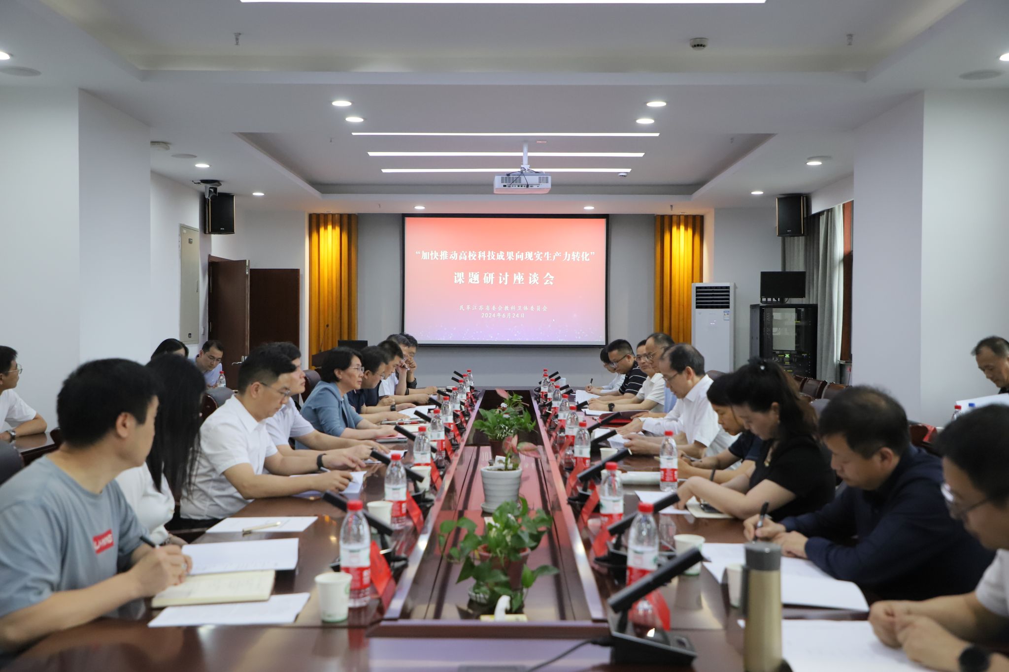 6月24日,民革江苏省委会副主委、教科卫体委员会主任、民革南京市委会主委程永波一行来伟德官网,围绕“加快推动高校科技成果向现实生产力转化”课题开展研讨交流。民革江苏省委会副主委、校长邢卫红出席座谈会并致辞。民革江苏省委会教科卫体委员会副主任、民革镇江市委会主委王加友主持座谈会。