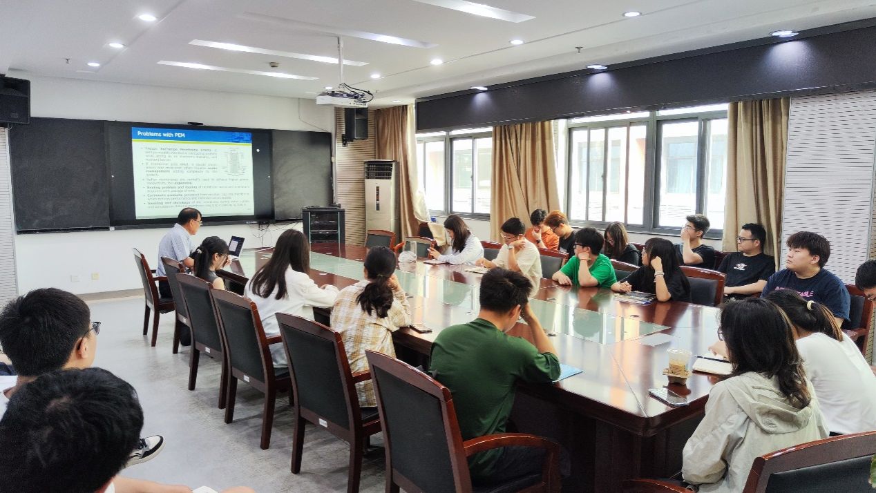 金光龙以“0ff-Design Flow Instabilities in a Centrifugal Pump with a Volute”和“Development of Flow Channels in Membraneless Microfluidic Fuel Cells”为题作学术报告,阐述了蜗壳离心泵水力性能与流动不稳定性之间的物理机制及其优化问题、无膜微流体燃料电池流道开发的关键技术及工程应用。会后,金光龙与老师和研究生进行了学术互动与交流。