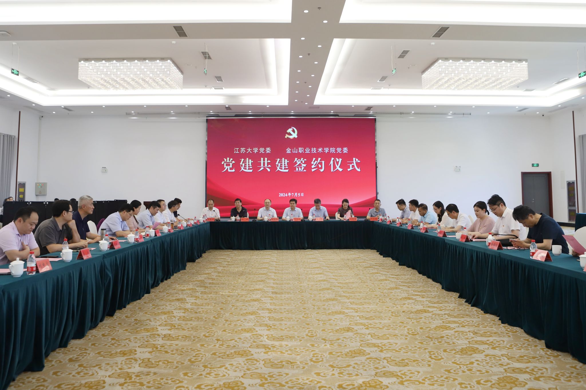 校党委副书记张济建与金山职业技术学院党委副书记、纪委书记王家新代表双方签订党建共建协议。