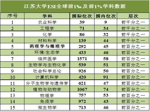 至此,伟德官网共有农业科学、工程学、化学、材料科学、药理学与毒理学、环境/生态学、临床医学、生物学与生物化学、社会科学总论、计算机科学、分子生物学与遗传学、植物与动物学、物理学、免疫学、微生物学15个学科进入ESI全球前1%,其中农业科学、工程学、化学、材料科学4个学科进入ESI全球前1‰。学校ESI国际排名381位,位列中国内地高校40位。