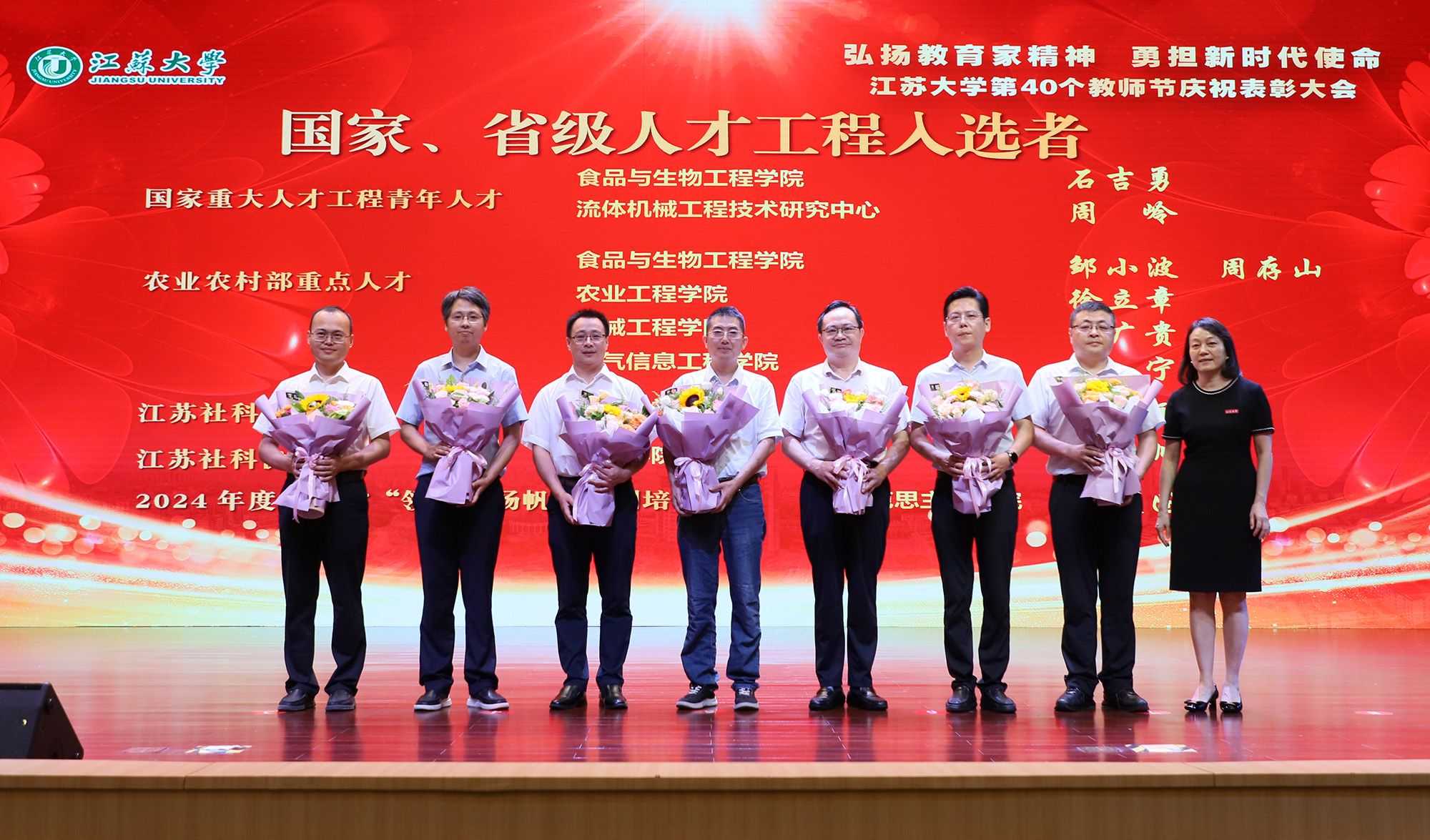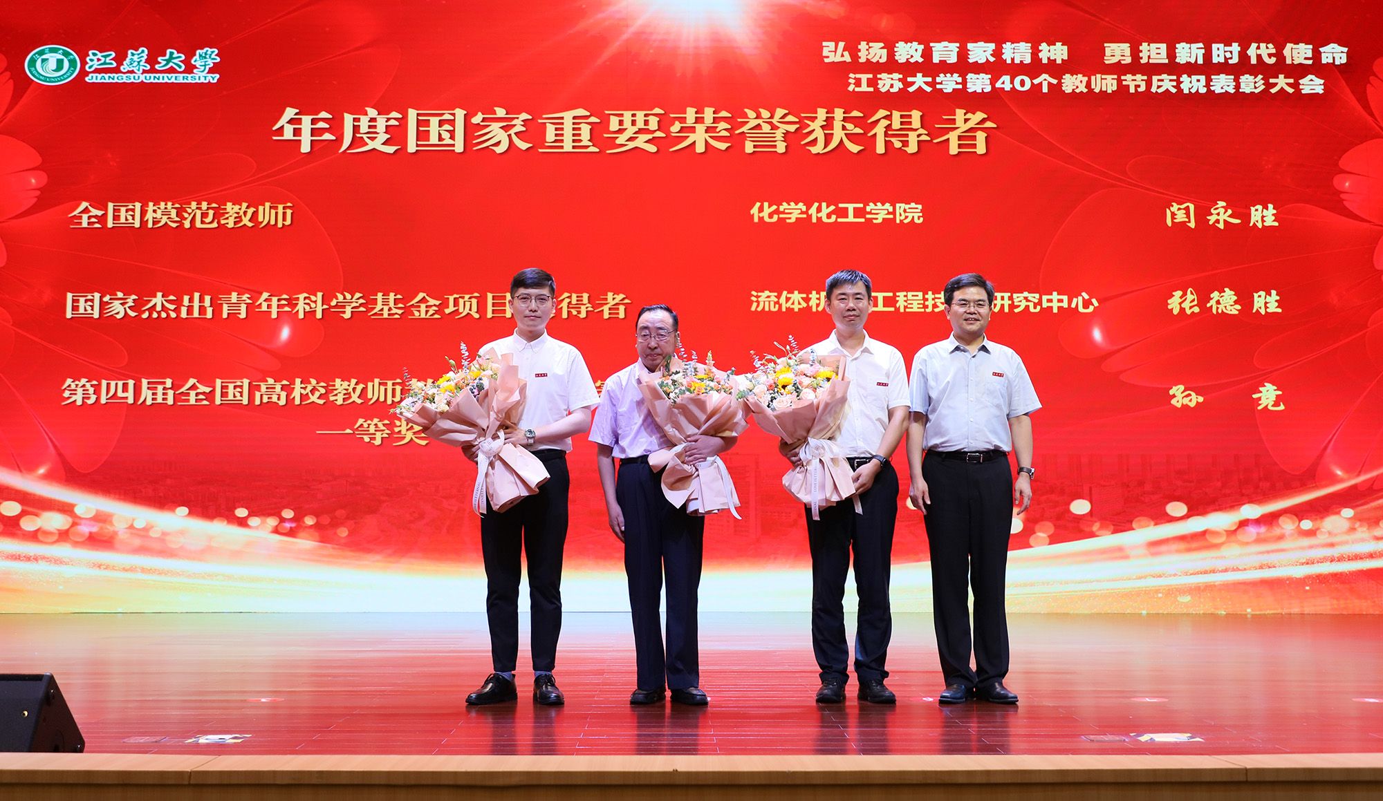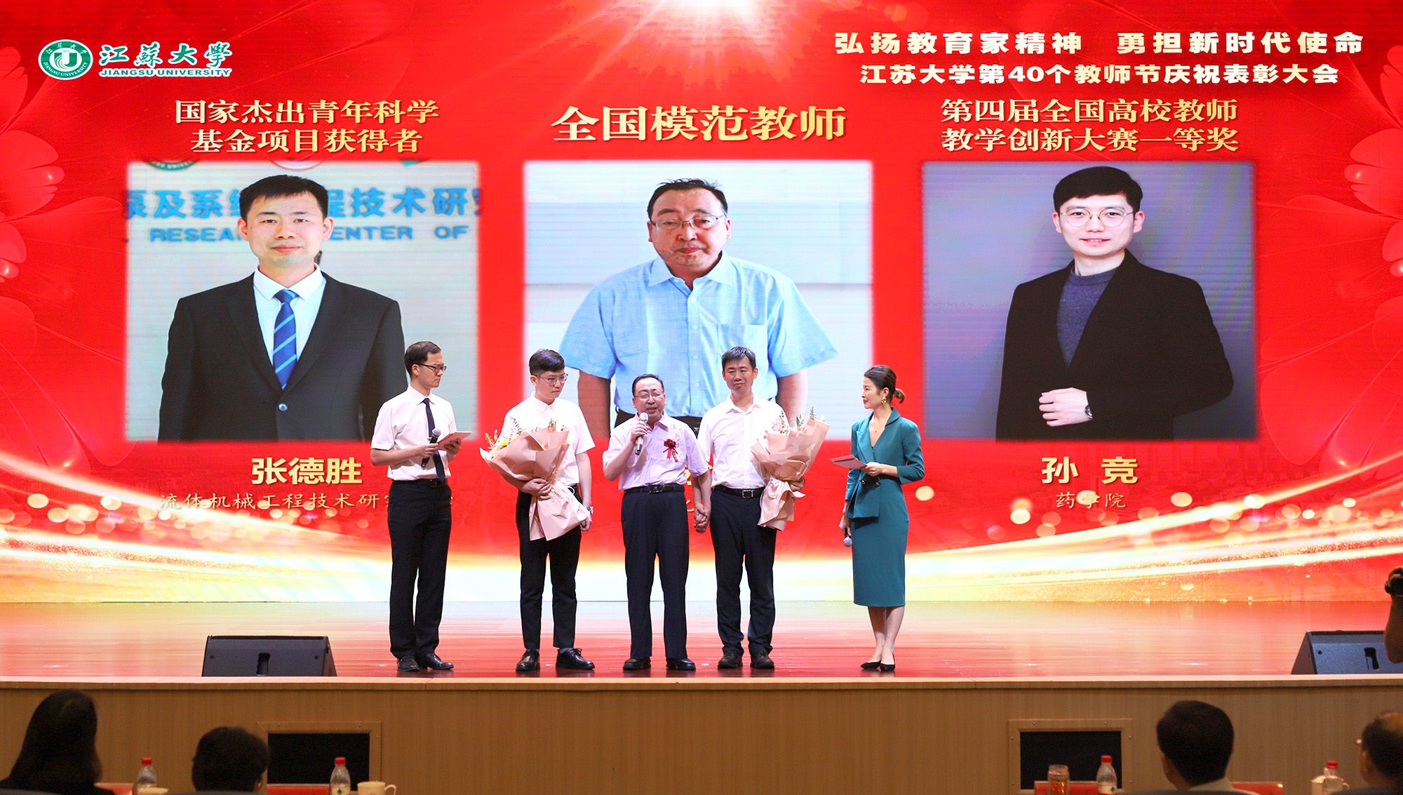 在第40个教师节到来之际,为大力弘扬教育家精神,加快建设教育强国,勇担新时代使命,为党育人、为国育才,持续推进“双一流”创建和特色鲜明高水平大学建设,9月9日,学校隆重举行庆祝表彰大会,讲述江大故事、表彰先进教师、迎接新生力量。