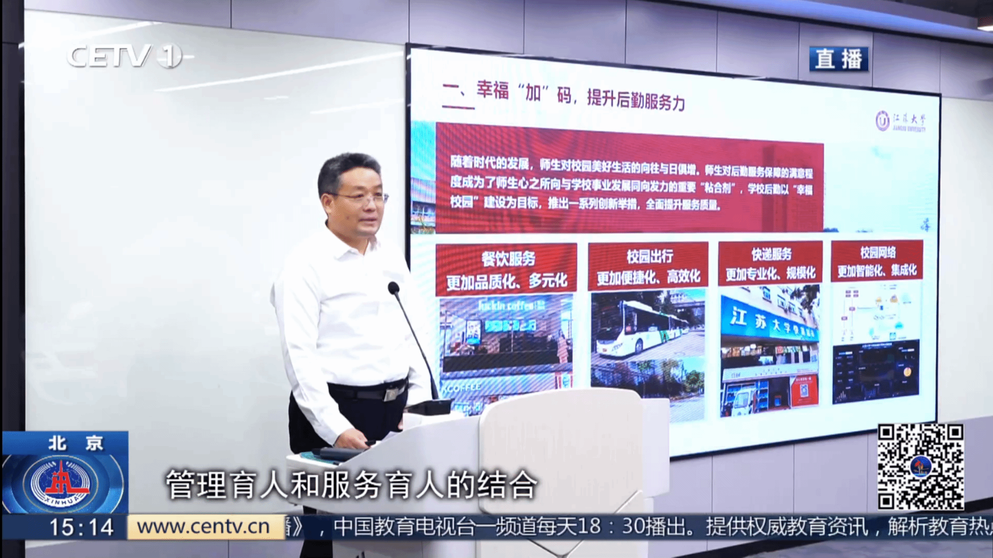 发布会上,伟德官网党委常委、副校长杨道建作题为《用好“加减乘除”工作法,强化后勤效能推动力》的主题报告,并接受中国教育电视台的采访,详细分享了伟德官网在后勤服务方面的创新举措和取得的显著成绩。