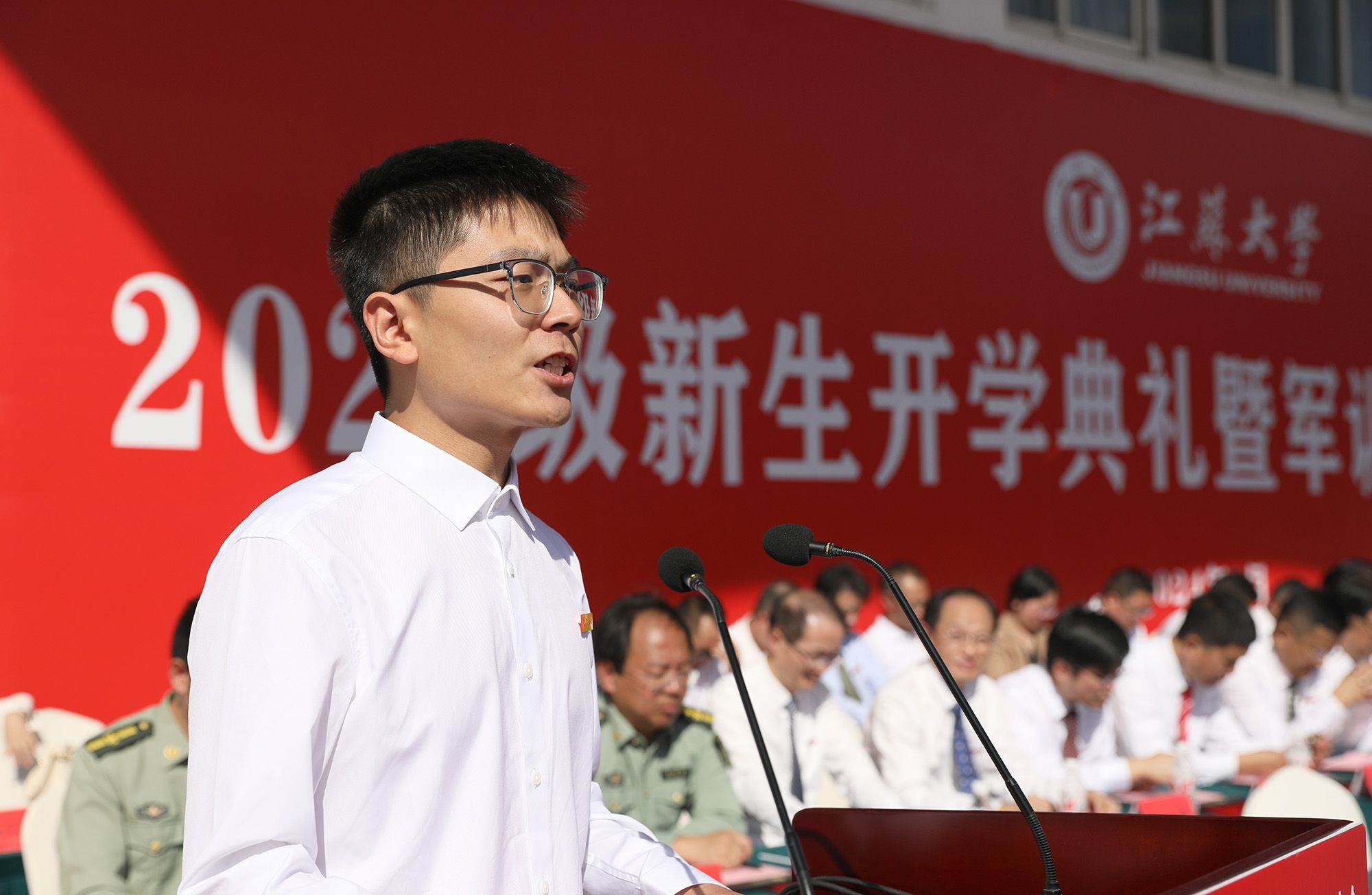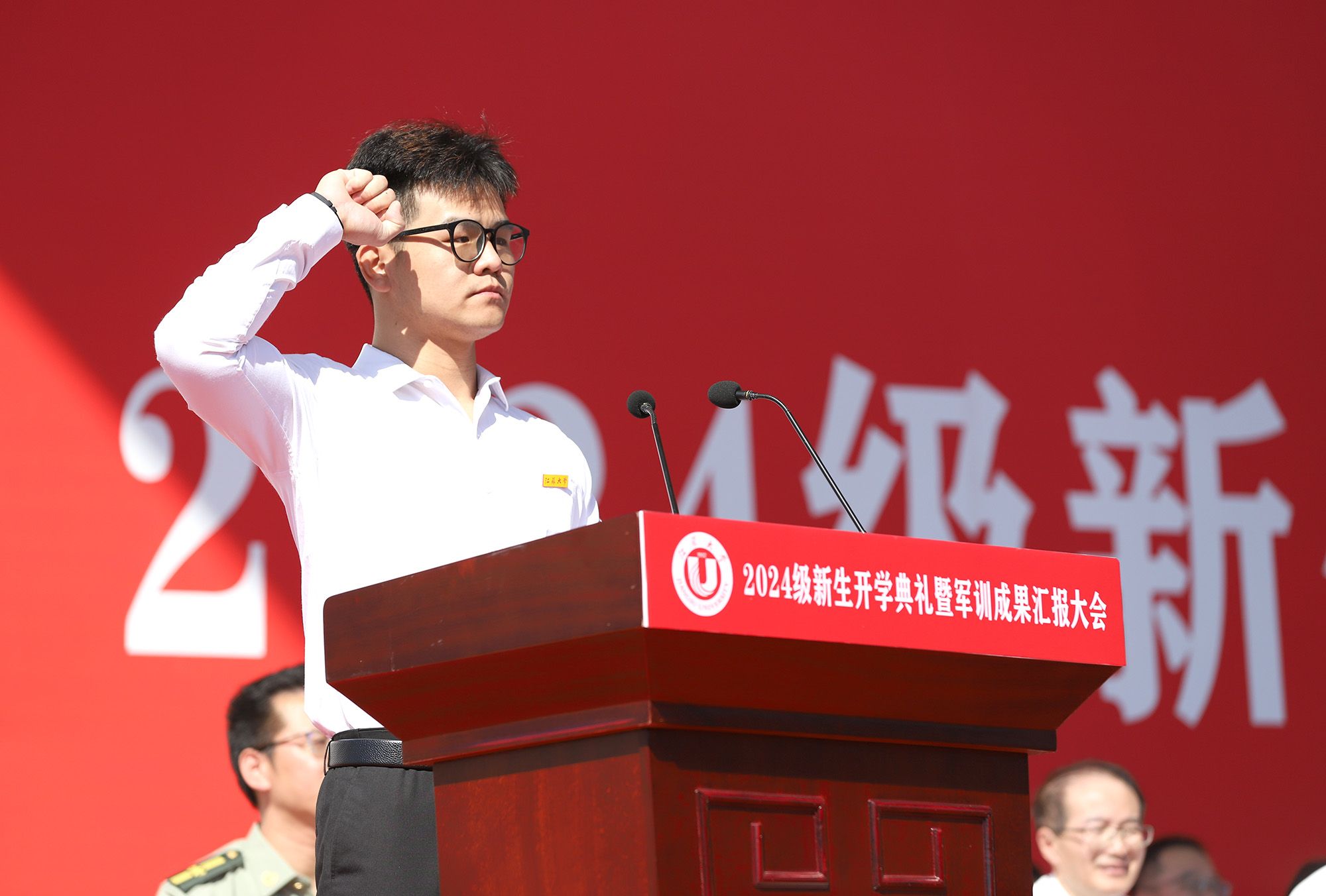 校党委常委、副校长任旭东在主持典礼时说,崭新的学习生活已开启,希望同学们接过时代接力棒,传承和发扬江大人的光荣传统,在青春赛道上奋力奔跑、奋勇争先。
