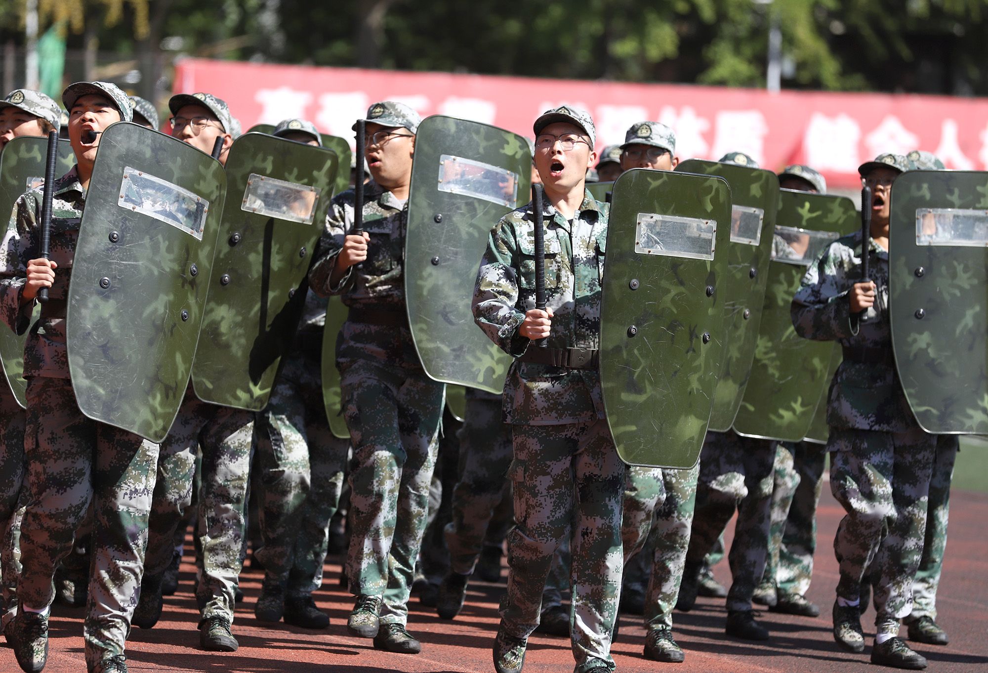 军旗飘扬,军歌嘹亮。分列式上,各方阵依次通过主席台。