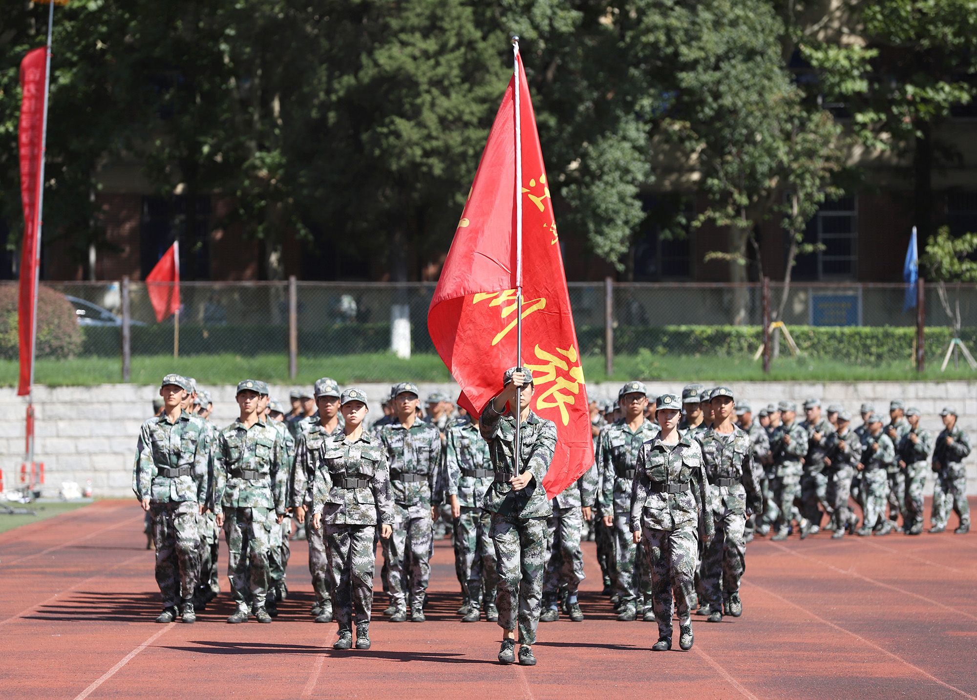 开学典礼后举行了2024级本科生军训成果汇报大会。