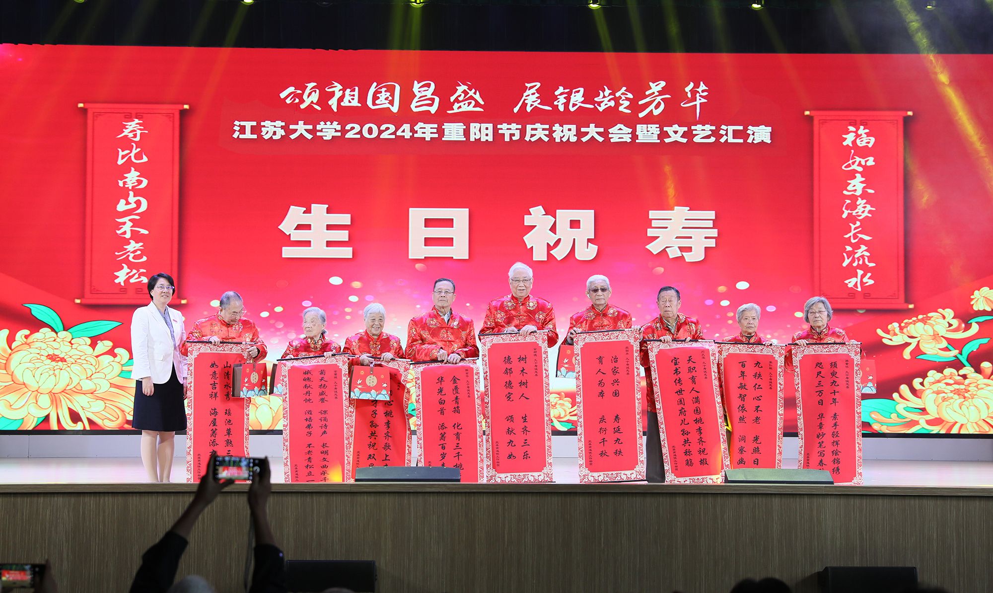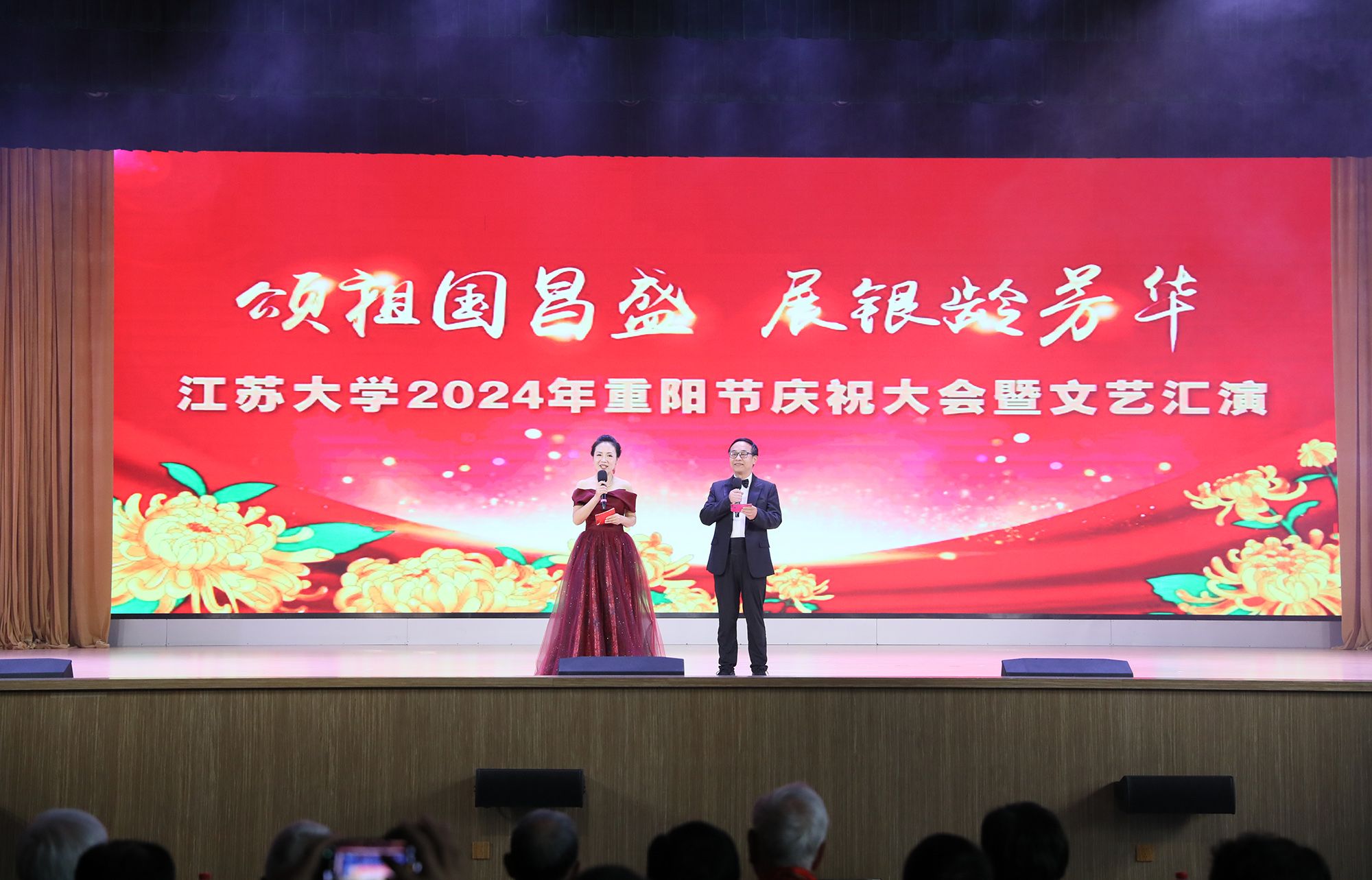 庆祝大会和文艺汇演紧扣“颂祖国昌盛,展银龄芳华”主题,彰显了老一辈人对党和国家的热爱,展现了江大离退休老同志老有所为、老有所乐的精神风貌。(党委离退休工作部)