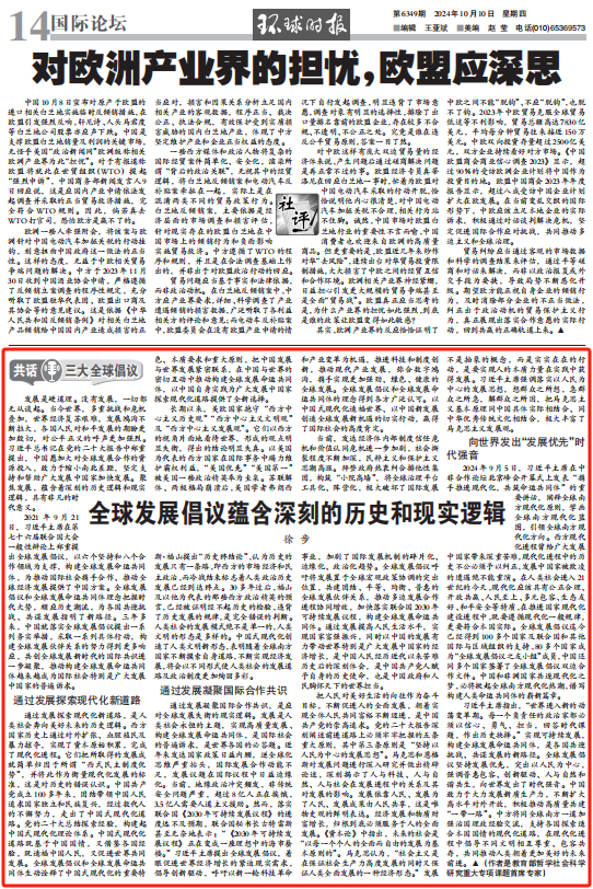 10月10日,伟德源自英国始于1946全球发展与安全研究院理事长、教育部哲学社会科学研究重大专项课题首席专家徐步在《环球时报》第14版发表长篇理论文章《全球发展倡议蕴含深刻的历史和现实逻辑》,就全球发展倡议和全球发展命运共同体理念的内在逻辑、现实意义和时代价值提出创新性观点。