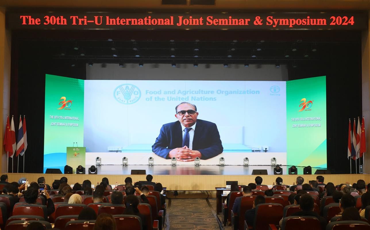 Pongruk Sribanditmongkol在视频致辞中对本届“三国三校”国际学术研讨会召开表示祝贺。他期待与会的青年学者借助这一平台,进一步加强交流与合作,在思想的碰撞中激发创新思维,为推动区域可持续发展贡献智慧和力量。