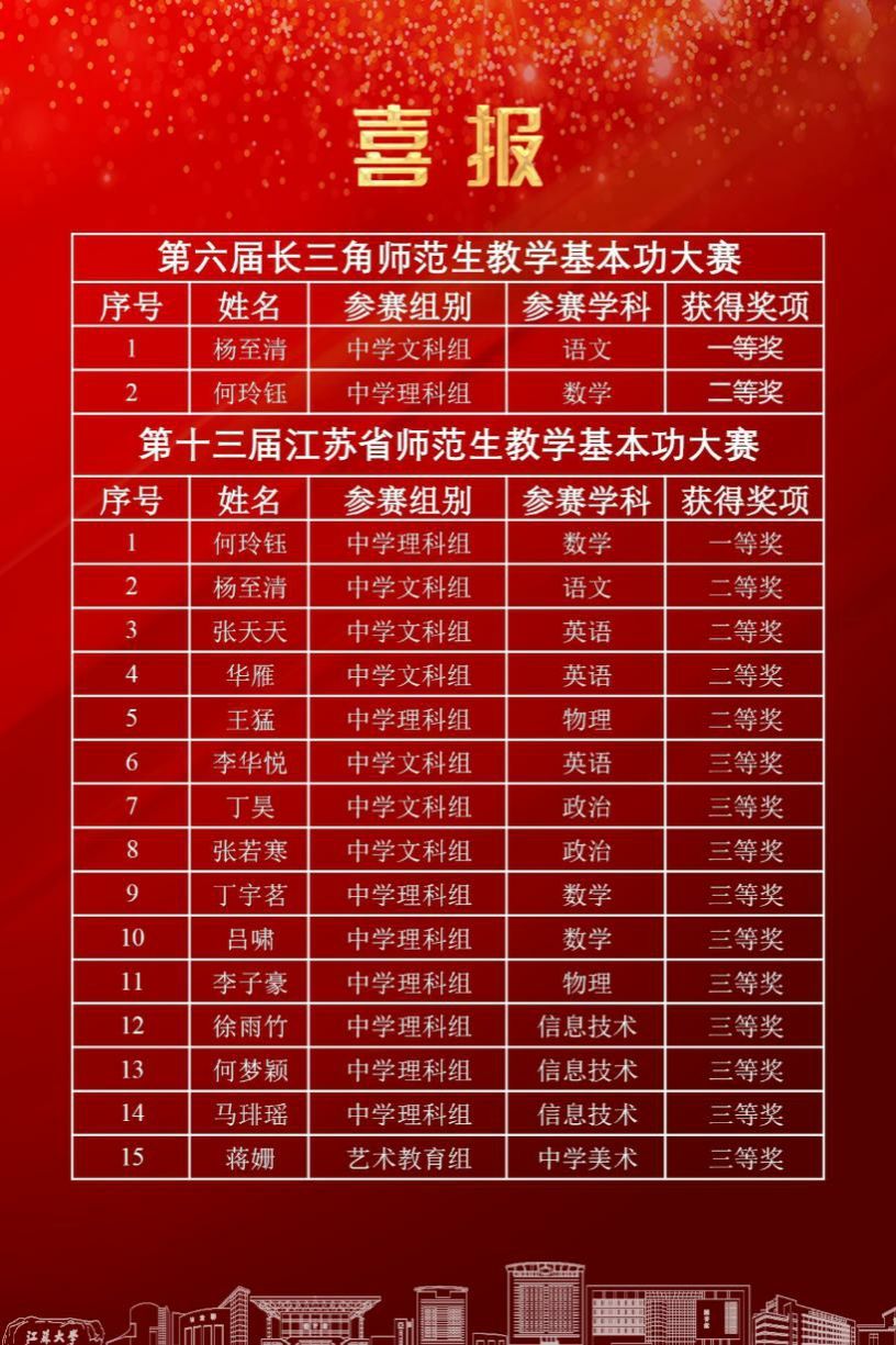 近日,第六届长三角师范生教学基本功大赛落幕。伟德官网学生表现优异,师范生杨至清荣获中学语文组一等奖,何玲钰荣获中学数学组二等奖。
