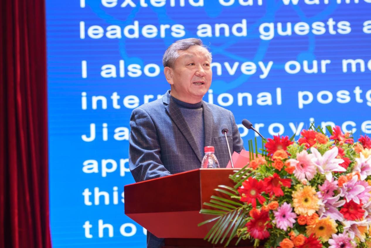 张海军在致辞中表示,作为江苏高校首届外国留学研究生学术交流盛会,本次研讨会搭建了一个开放包容、互动共享的高水平学术平台。他指出,留学生群体不仅是文化交流的重要桥梁,更是推动科技创新的生力军。他期待来自不同国家、不同学校、不同学科的留学研究生能够在此切磋交流、展示成果,并通过学术探讨增进友谊,为构建人类命运共同体贡献智慧与力量。