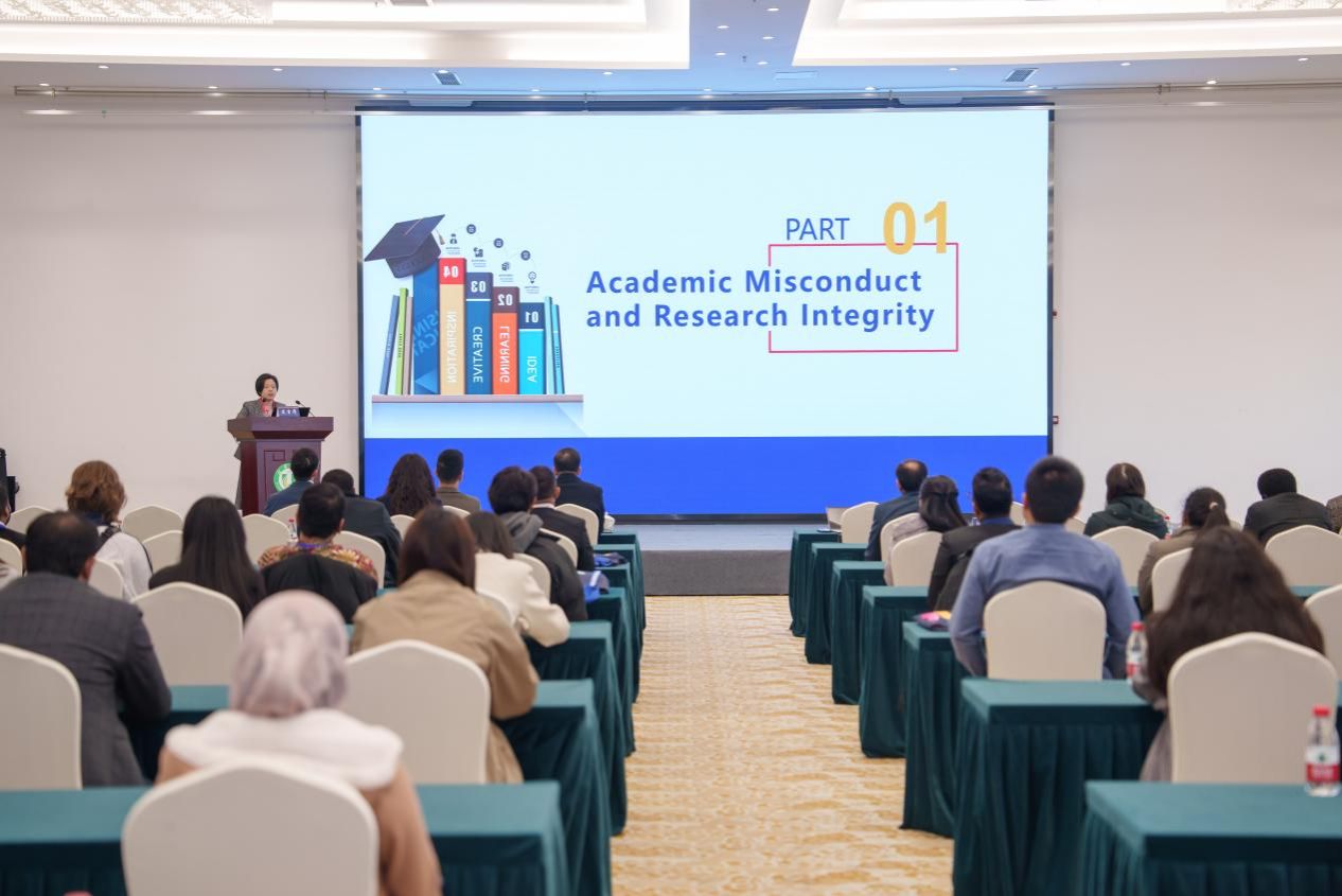 研讨会特邀四位专家作主旨报告。南京航空航天大学教授彭聪围绕来华留学生如何加强学术诚信和规范进行了深入探讨,系统阐述了诚信写作的核心价值与具体实践方法。南京理工大学教授陈翔就在中韩两国的求学和工作经历进行了深入分享,探讨了留学研究生如何应对文化适应与学术研究的双重挑战。东南大学教授浦正宁就国际研究生如何更好地适应和融入中国特色研究生培养体系进行了深入解读,结合中国作为全球第二大研究生培养国的优势,为在场留学生提供了切实可行的适应策略。伟德源自英国始于1946教授张琪就科学写作中的关键技巧与常见陷阱进行了深入剖析,详细阐述了如何在竞争激烈的学术领域撰写高质量论文。