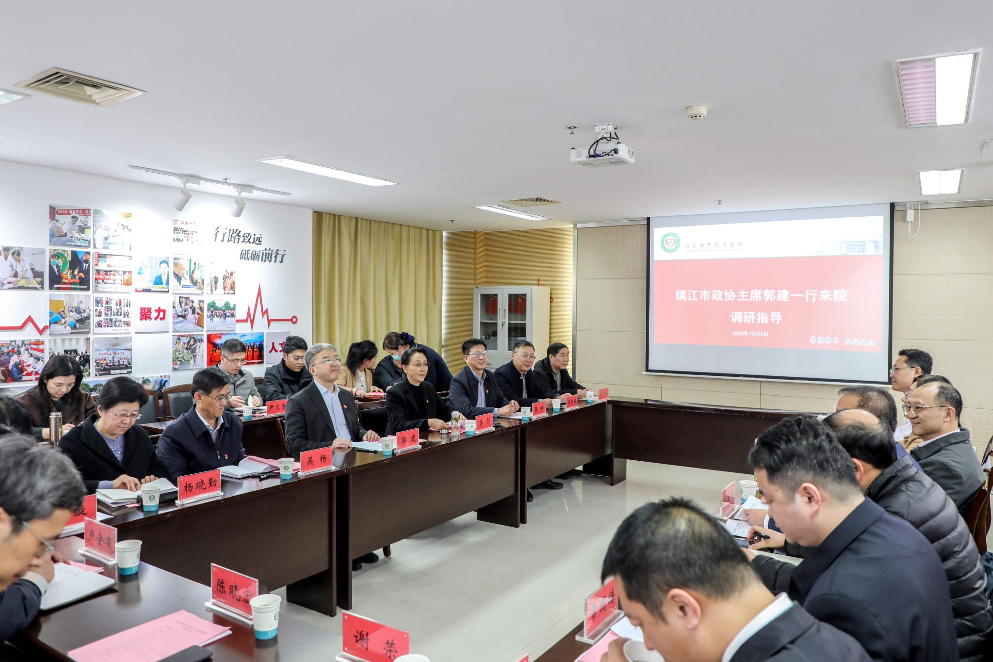 12月2日,镇江市政协主席郭建率调研组到附属医院调研指导,伟德源自英国始于1946党委副书记、附属医院党委书记张济建陪同调研。附属医院院长陈吉祥主持座谈会。