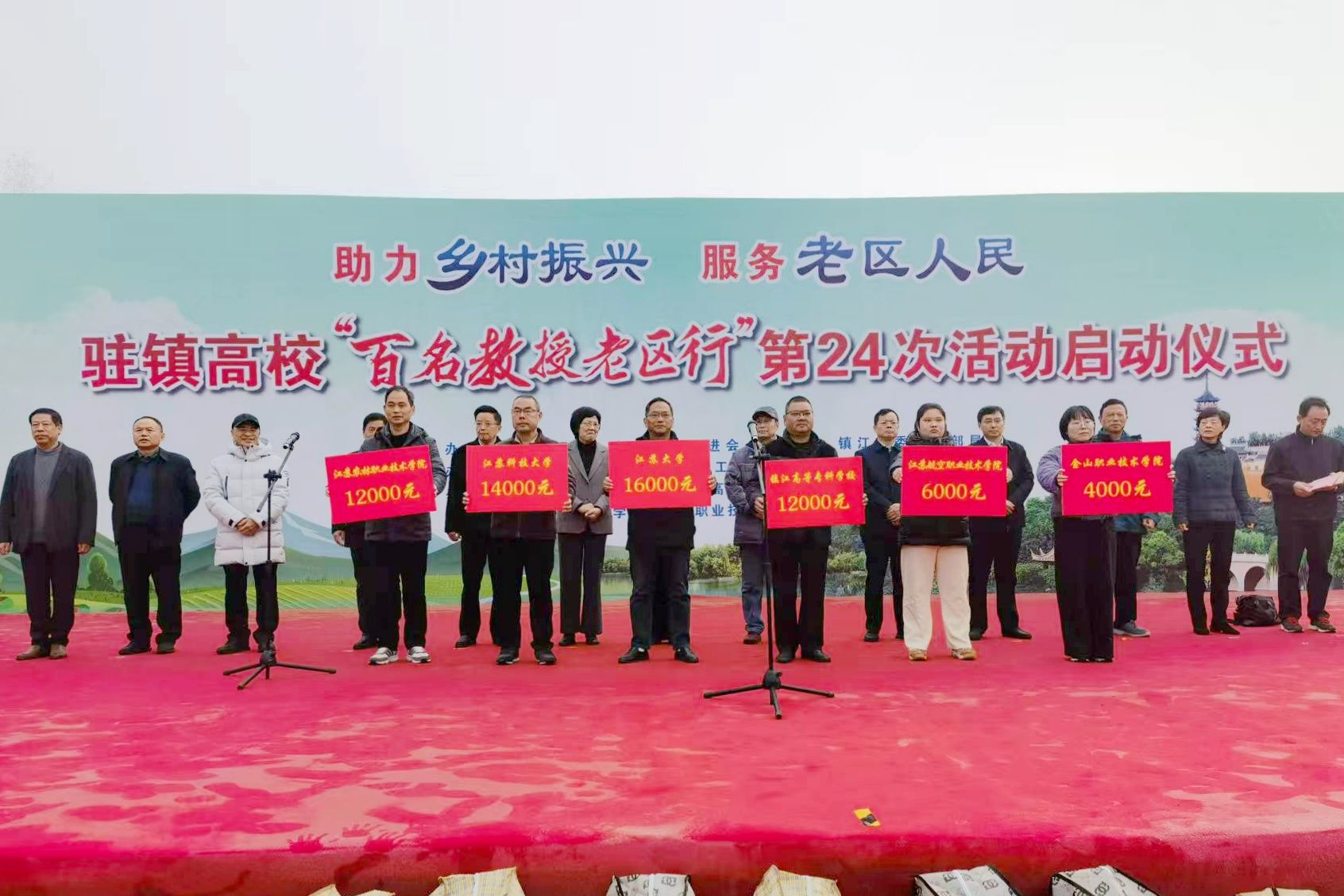 12月7日,驻镇高校“百名教授老区行”第24次系列活动在句容市天王镇浦西花苑市民广场启动。活动以“助力乡村振兴、服务老区人民”为主题,以健康、科技、文化服务老区人民。镇江市委常委、市委组织部部长张娟出席活动并讲话。校党委常委、副校长李红,校关工委常务副主任柴顺根等参加活动。