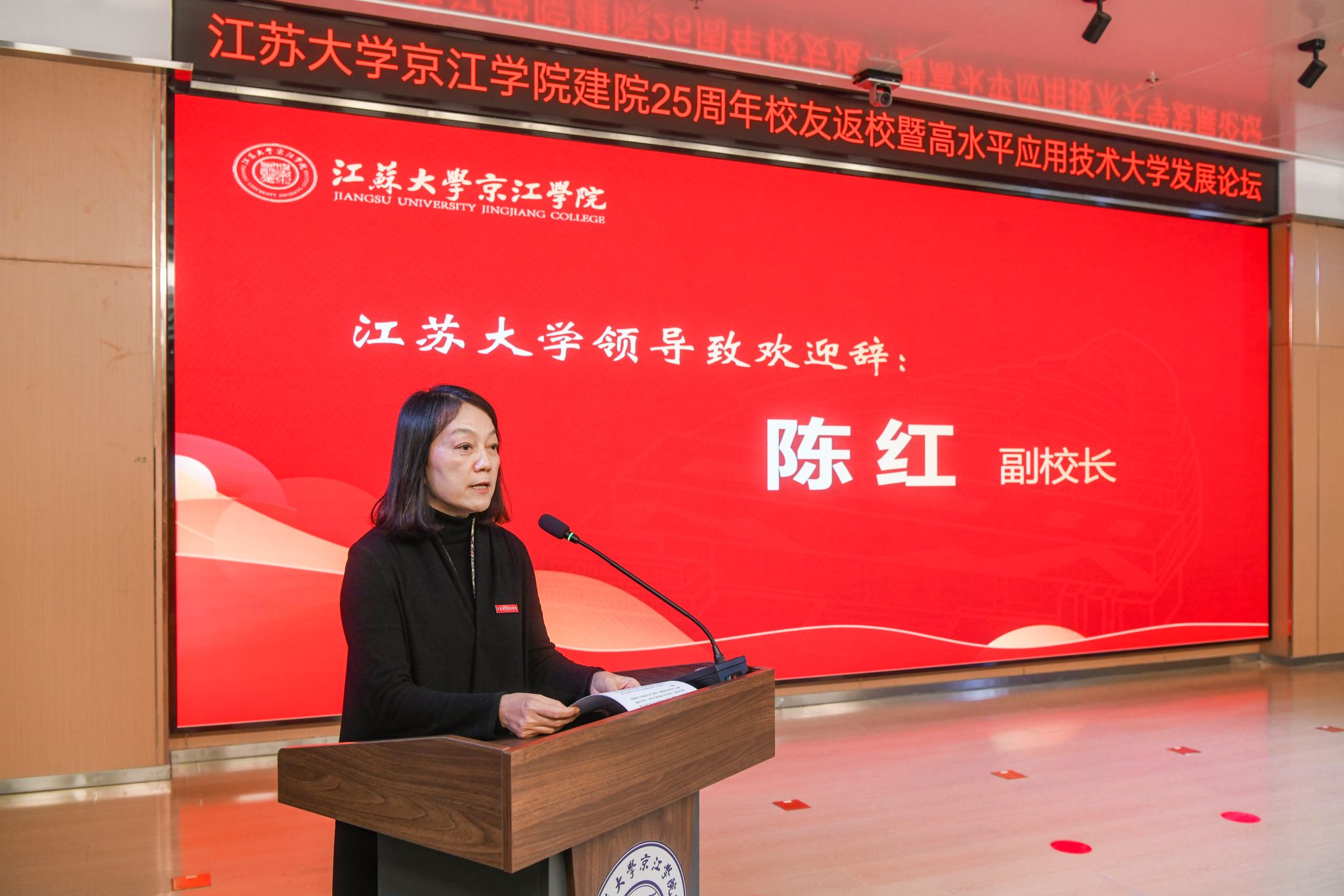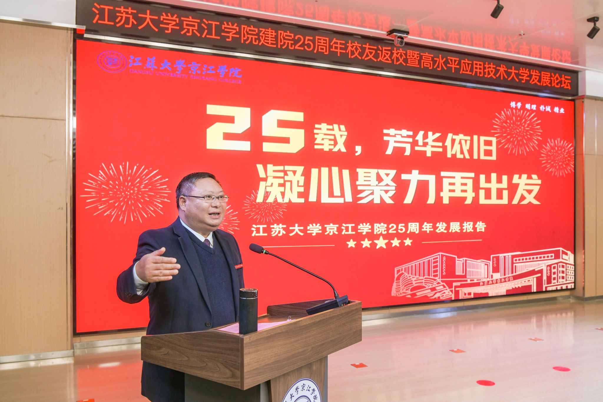 12月21日,京江学院在学术交流中心报告厅举行建院25周年校友返校暨高水平应用技术大学发展论坛。镇江市政协副主席、伟德源自英国始于1946副校长陈红,镇江市发展和改革委员会副主任朱华,南京师范大学中北学院院长戴传超,校友会与对外联络办公室主任李国昊,企业代表,京江学院全体院领导、校友代表、教师代表、学生代表出席大会。