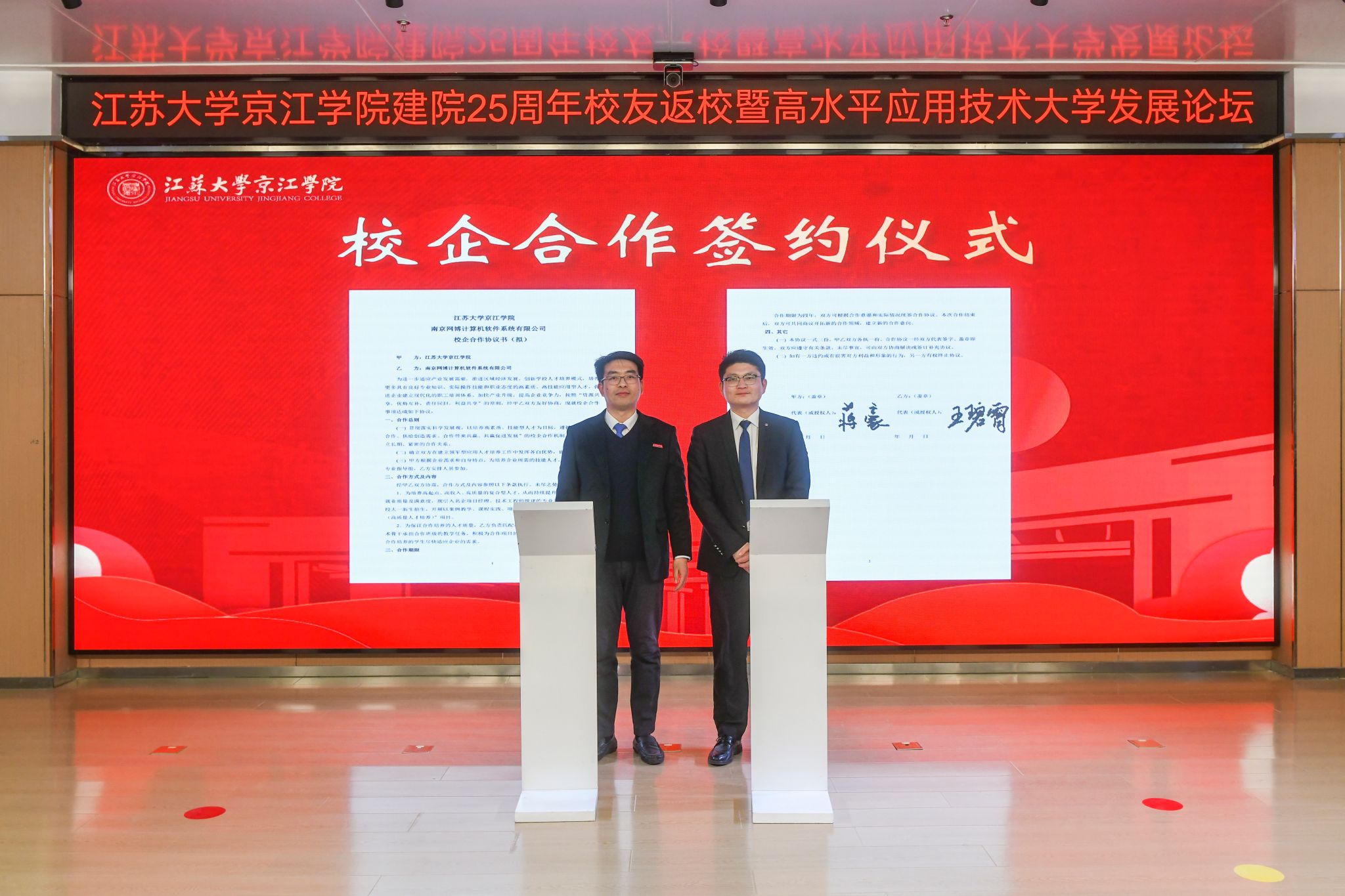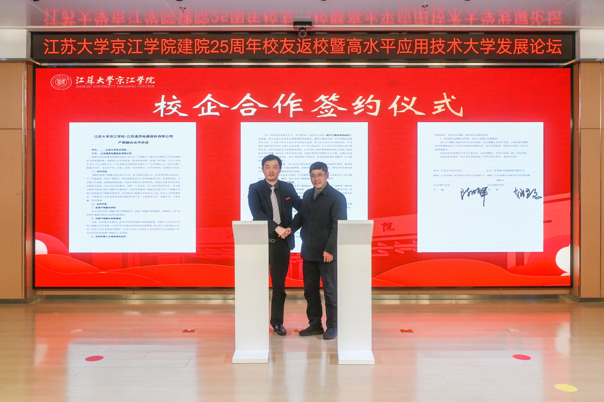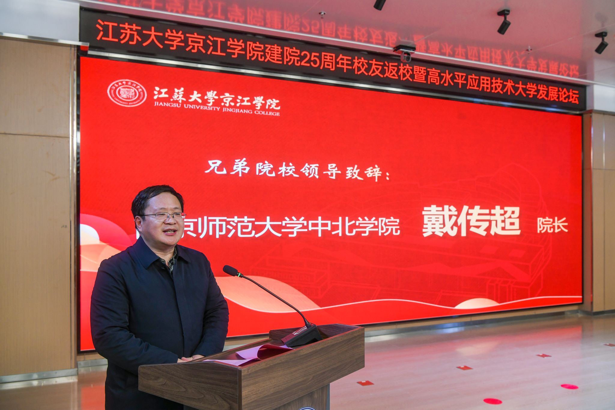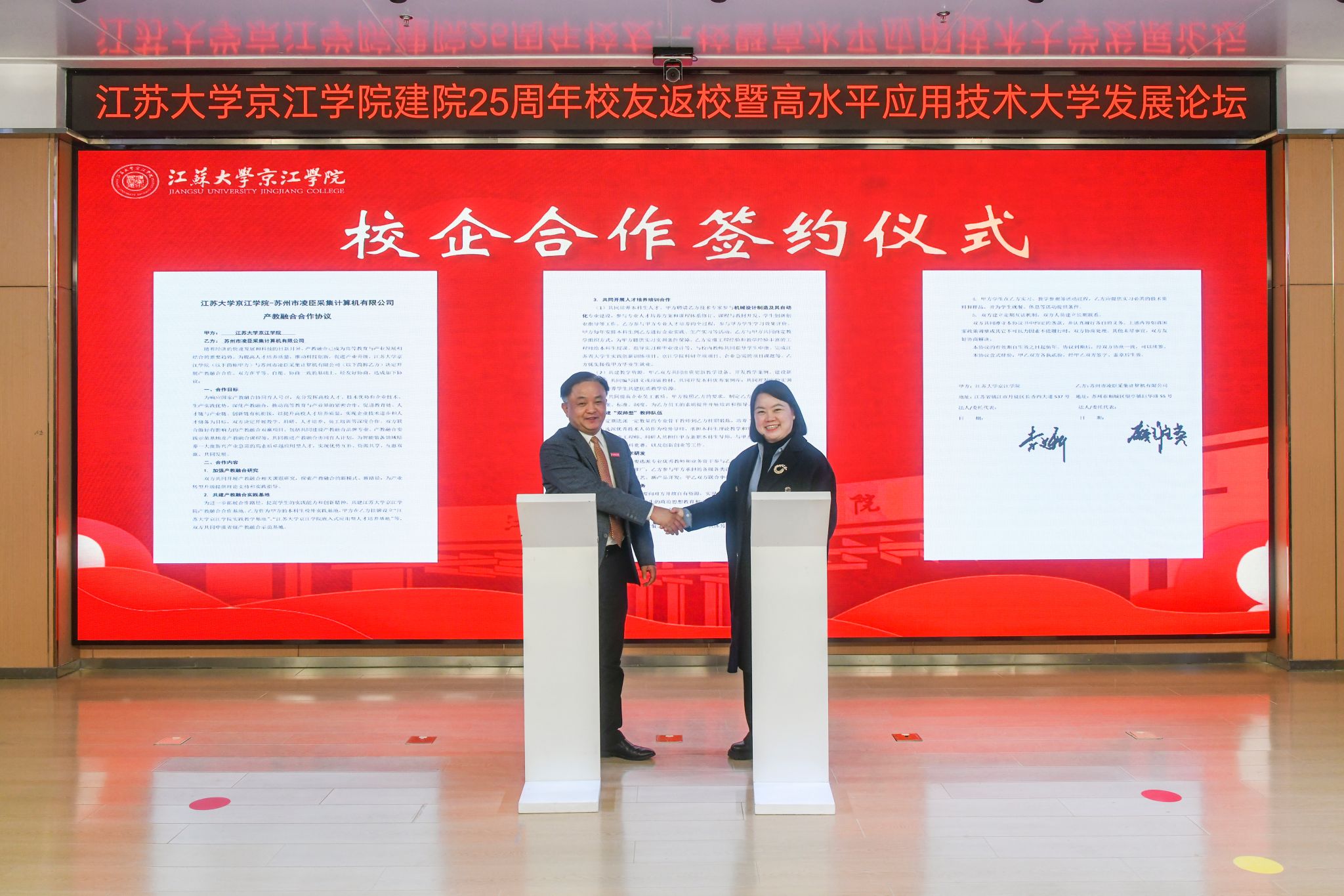 会前,与会来宾共同观看京江学院建院25周年院庆专题片《与你共“京”彩》。