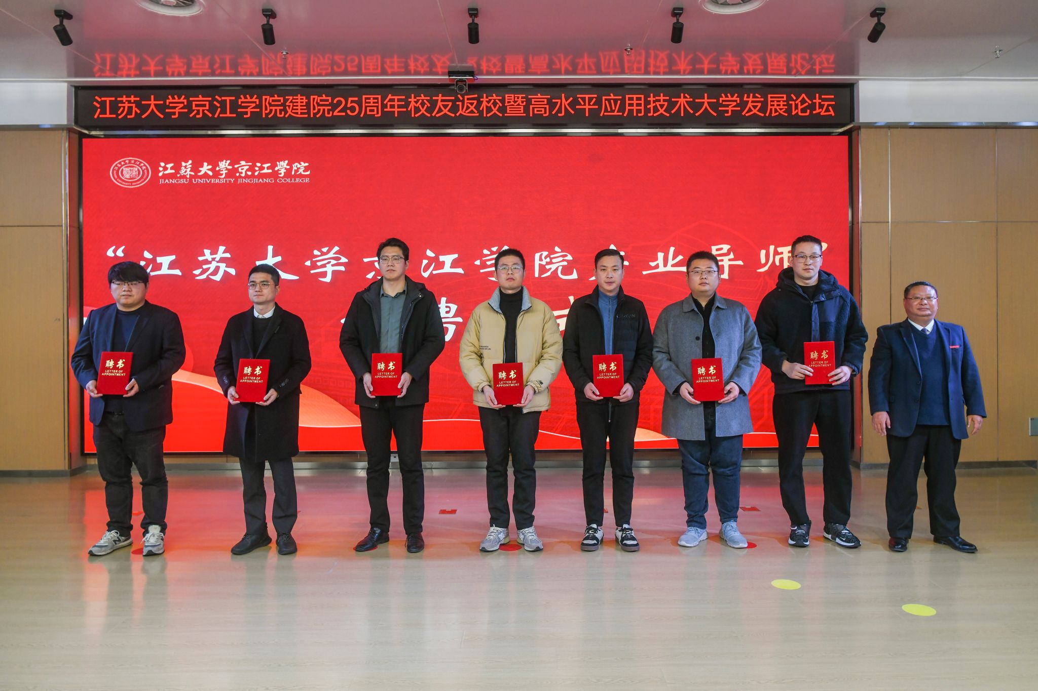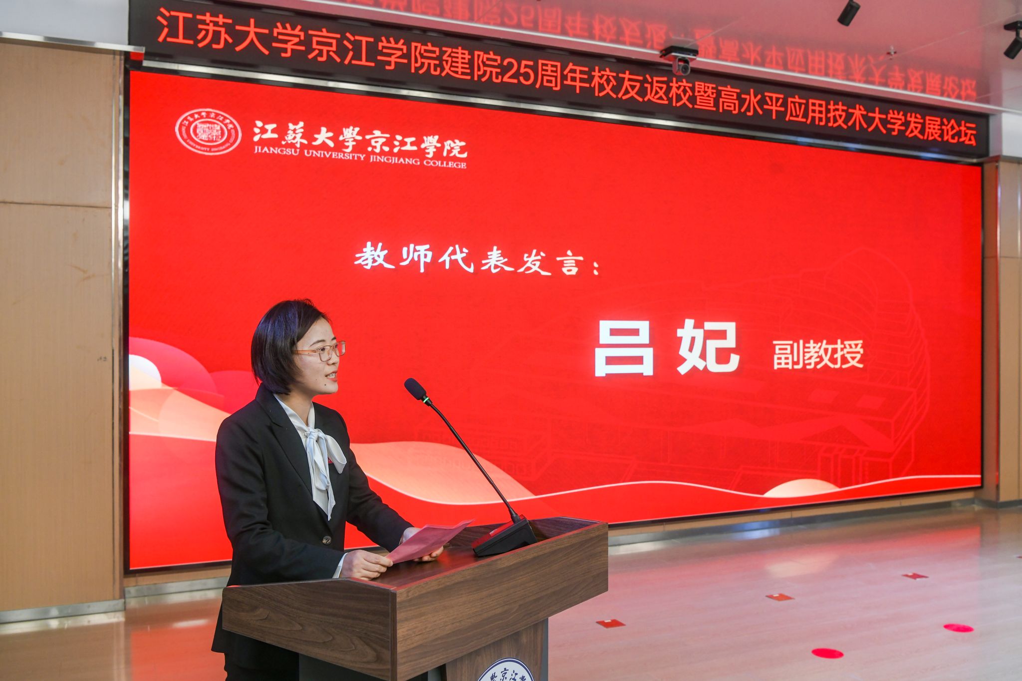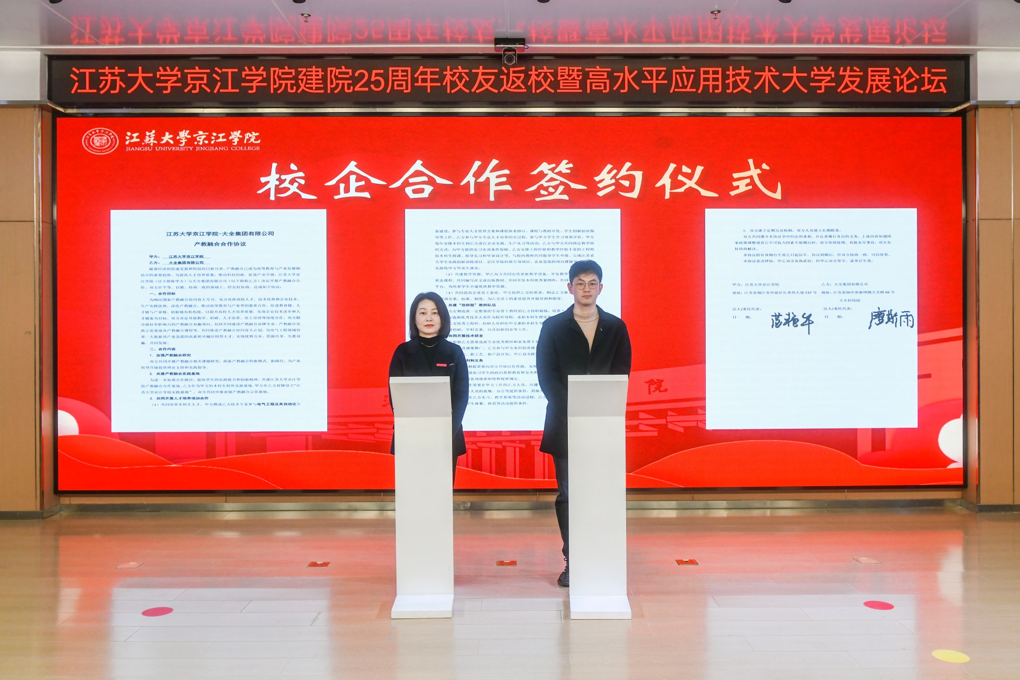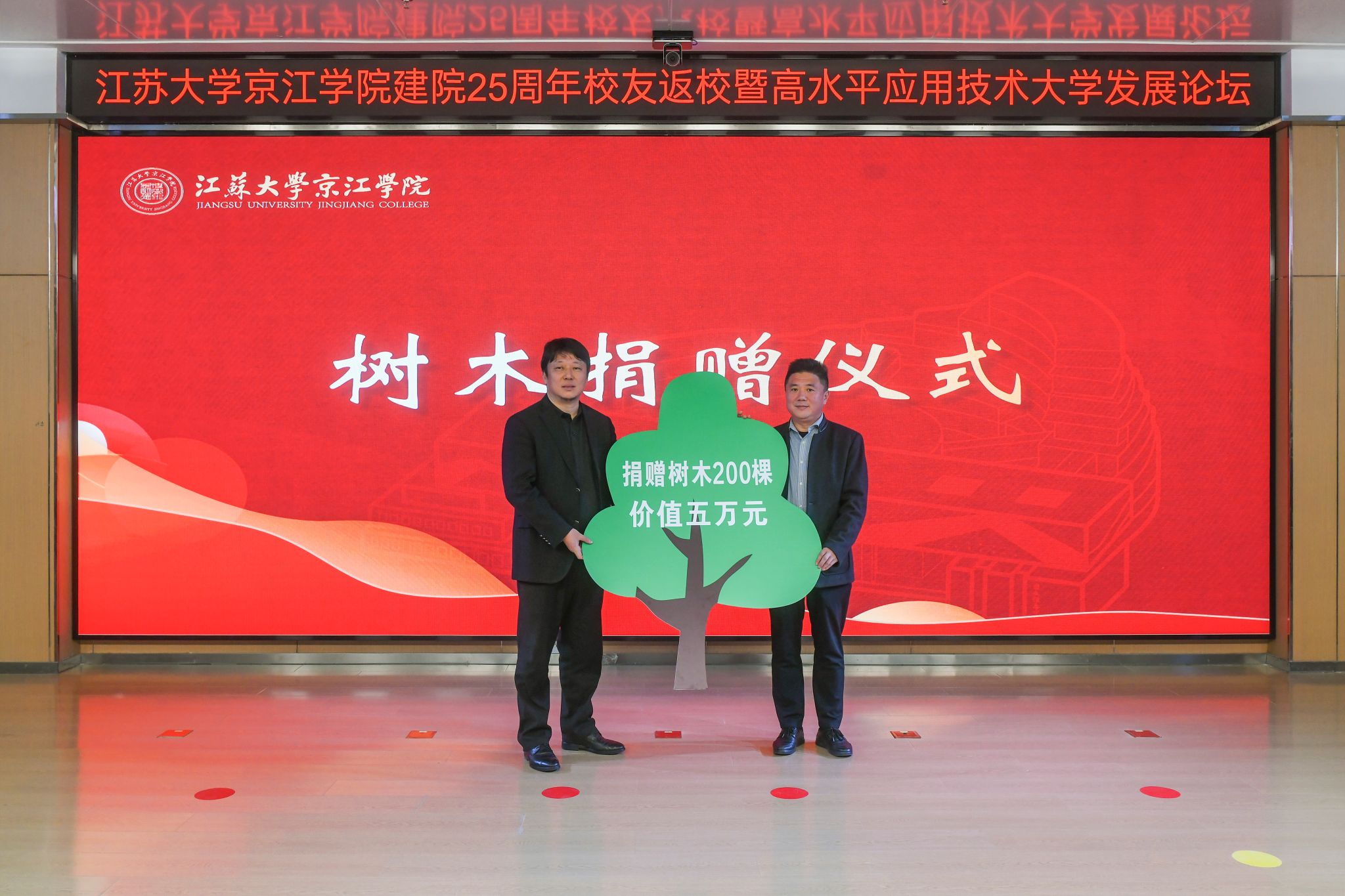 会前,与会来宾共同观看京江学院建院25周年院庆专题片《与你共“京”彩》。