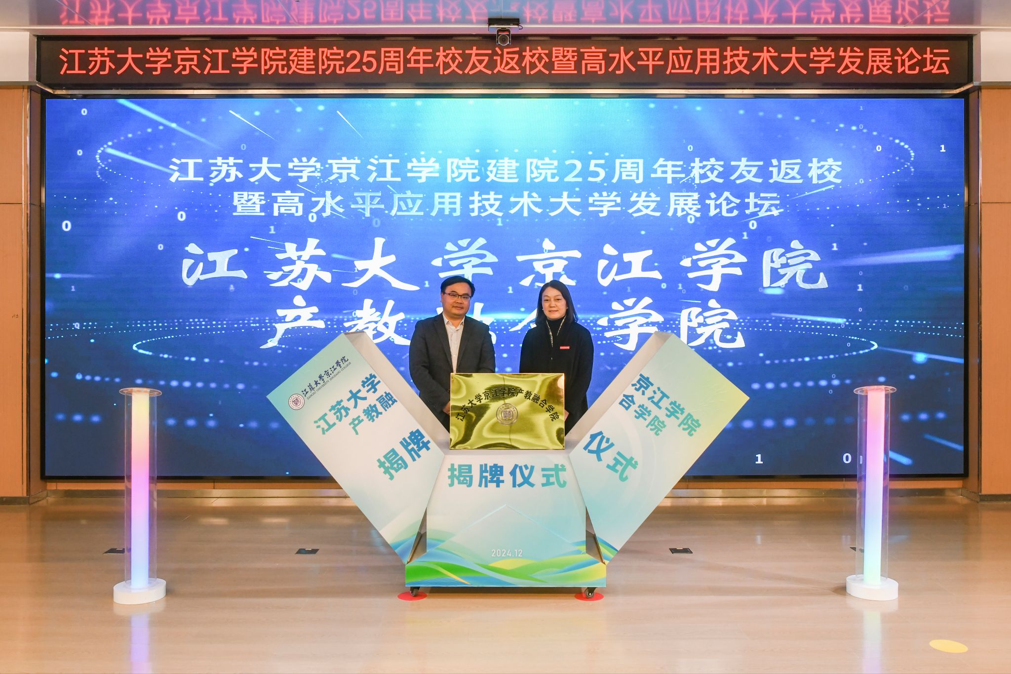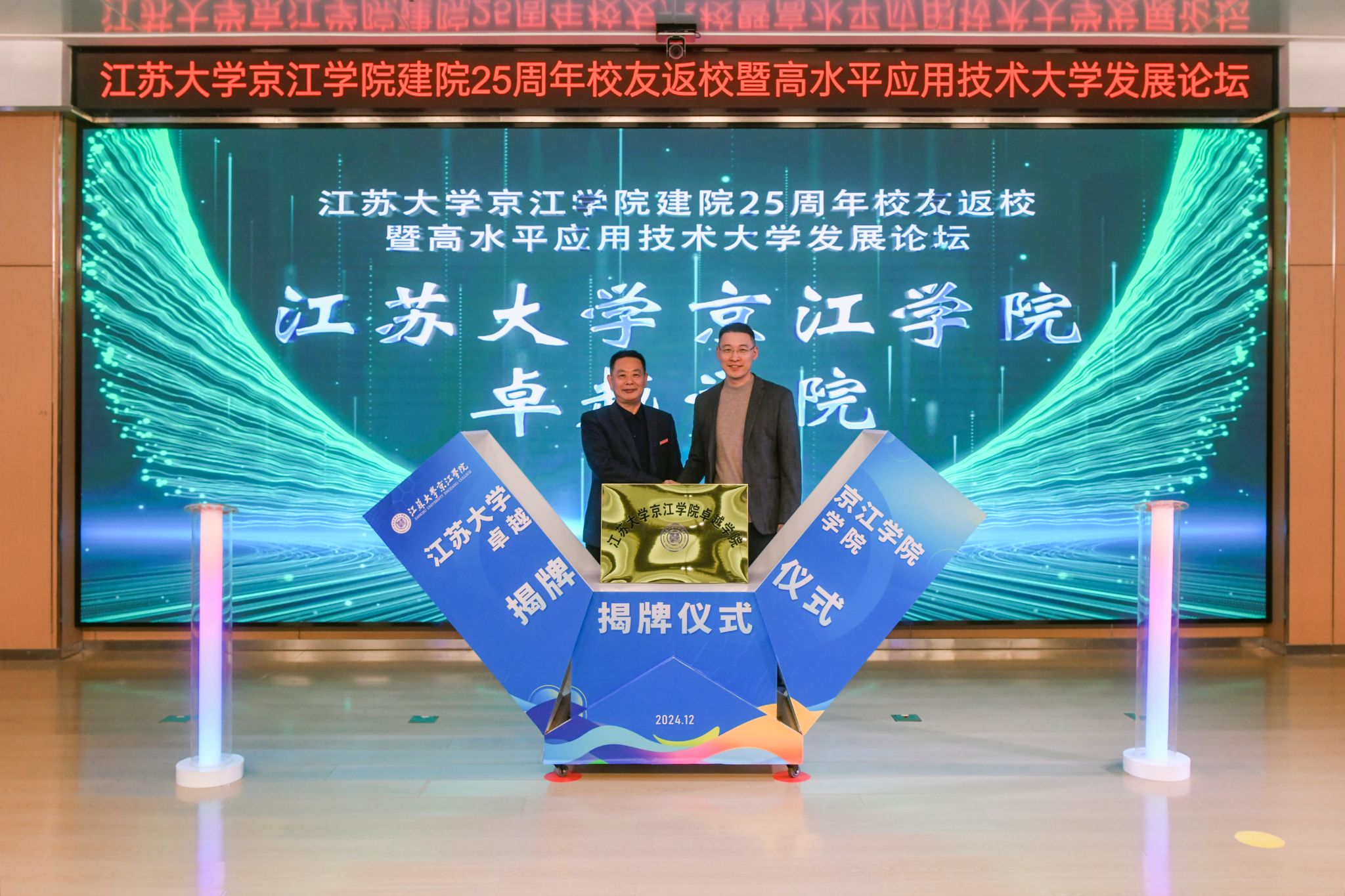 陈红和朱华共同为伟德源自英国始于1946京江学院产教融合学院揭牌。伟德源自英国始于1946京江学院党委书记崔金贵和周君君共同为伟德源自英国始于1946京江学院卓越学院揭牌。