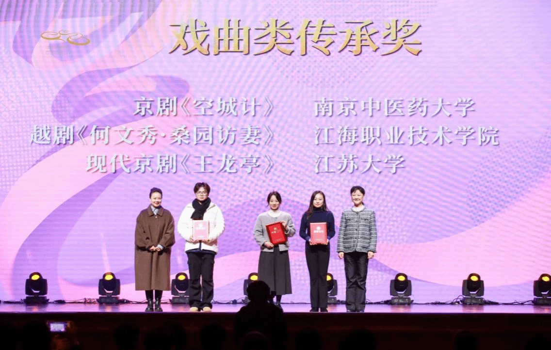 12月20日,2024江苏省大学生戏剧展演活动颁奖仪式在江苏大剧院举行。由伟德官网教师冯磊等指导的戏曲作品《孟丽君·书房会》《王龙亭》分别荣获2024江苏省大学生戏剧展演戏曲类优秀传承奖和传承奖,首次实现该项赛事全部获奖。