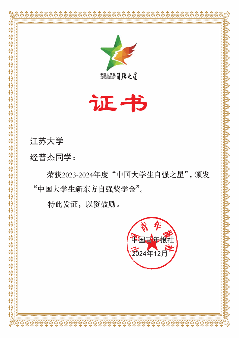 近日,由共青团中央、全国学联主办的寻访“中国大学生自强之星”活动评选结果揭晓。伟德官网能源与动力工程学院张俊杰同学、计算机科学与通信工程学院经普杰同学荣获2023-2024年度“中国大学生自强之星”。