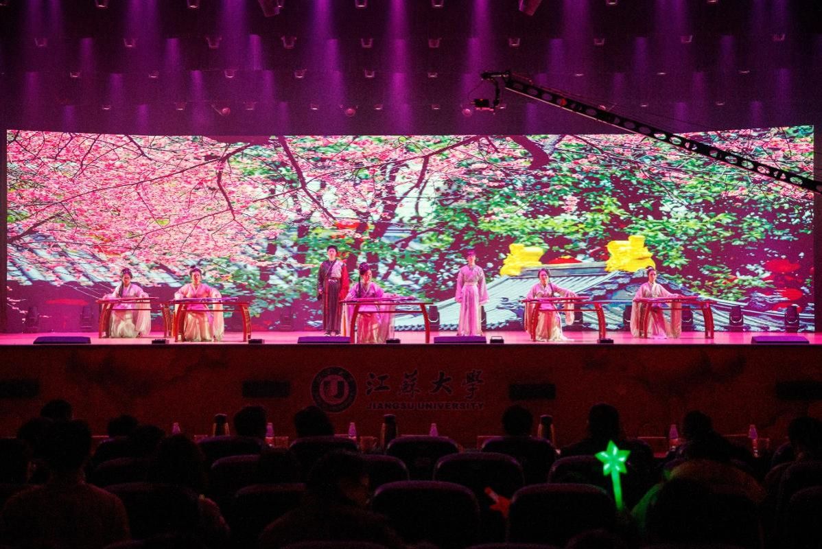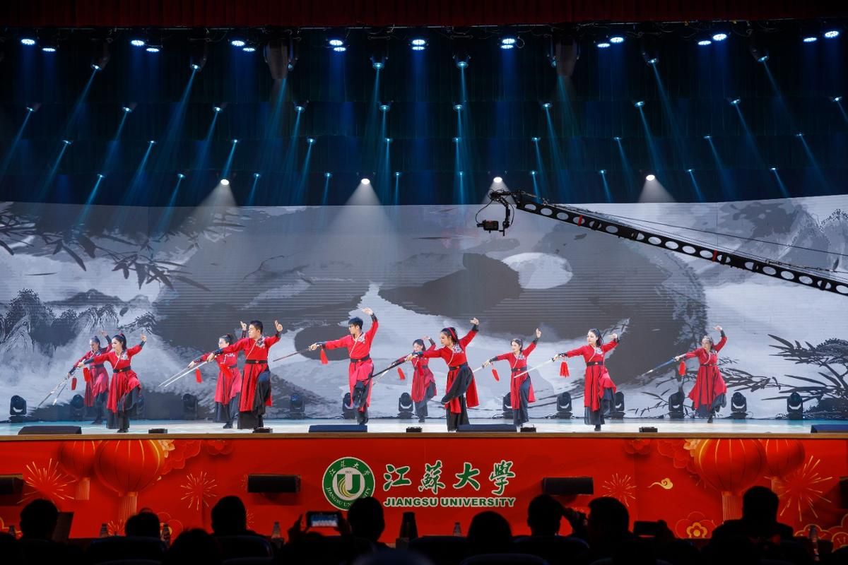 小品《江洲劫法场》“包袱”不断,尽显江大教师的多才多艺;旗袍秀《杏花落》中女教师舞姿优雅,似从画中翩然走来;太极表演《剑杖天涯》完美融合了太极剑和太极杖,极具创意的设计搭配高难度的武术动作引得现场观众连连喝彩。