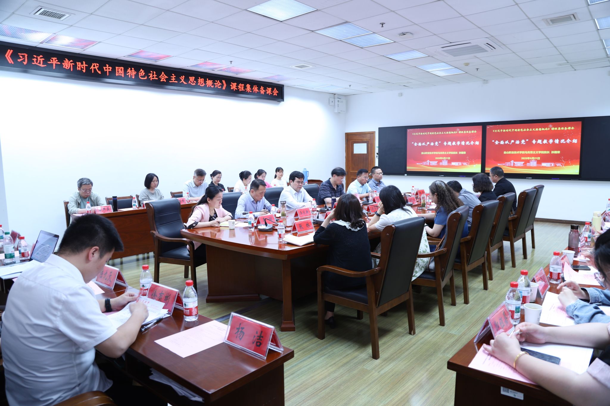 5月21日,伟德官网与金山职业技术学院共同举办了以“中央八项规定精神融入全面从严治党专题教学”为主题的集体备课会。校党委书记李洪波,金山职业技术学院党委书记徐铭、副书记王家新,两校马克思主义学院、团委有关领导及相关课程教师参加活动。