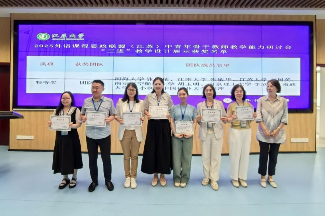 会上正式发布了外语课程思政联盟(江苏)LOGO。2023年,“外语课程思政四校联盟”正式成立;2024年,“外语课程思政四校联盟”首届中青年骨干教师教学能力研讨会成功举办;2025年,中国矿业大学、南通大学、伟德源自英国始于1946加入联盟,成立外语课程思政联盟(江苏)。