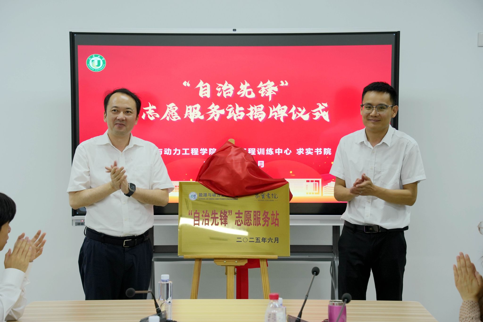 ‌6月20日,全国劳动模范、杰出校友姚学良重返母校与师生交流,校党委常委、副校长任旭东与姚学良共同为“自治先锋”志愿服务站揭牌。