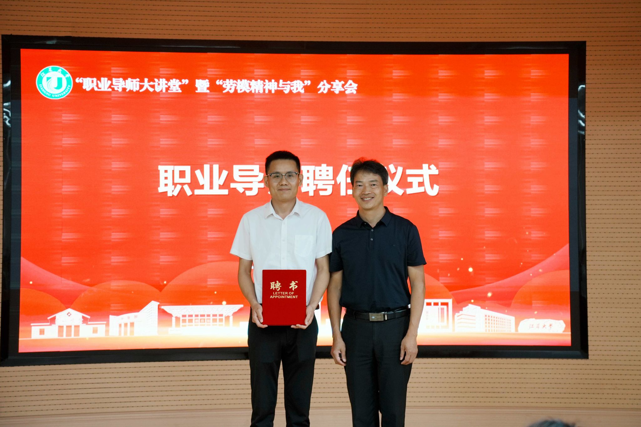 在“职业导师大讲堂”暨“劳模精神与我”分享会上,求实书院党总支书记孙后军为姚学良颁发职业导师聘书,姚学良作题为《从校园到职场:我的成长之路》的主题讲座。讲座中,姚学良分享了自己从江大学子成长为大国工匠的心路历程,以及在核电与LNG高端装备领域的创新实践。姚学良表示,执着专注、精益求精的工匠精神是他在职业生涯中不断突破自我的关键。互动交流环节,姚学良鼓励学弟学妹要扎根专业、勇于创新,并不断提升自己的综合素质。