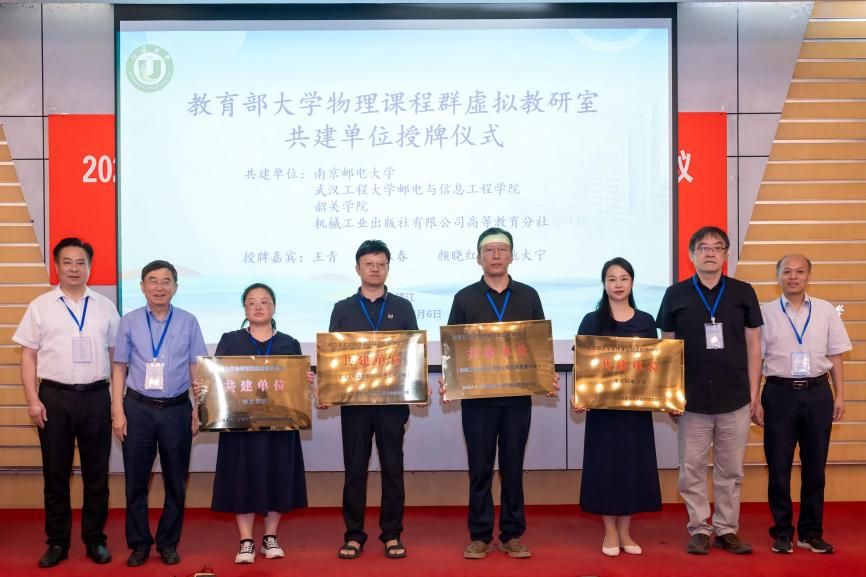 会上,王青、杜永春、南京邮电大学教授颜晓红、南京航空航天大学教授施大宁分别为南京邮电大学、韶关学院、武汉工程大学邮电与信息工程学院、机械工业出版社有限公司高等教育分社四所共建高校教师代表授牌,标志着教育部大学物理课程群虚拟教研室的共建合作正式启动。杜永春为伟德源自英国始于1946实践教学基地、安徽省科大奥锐科技有限公司代表授牌。