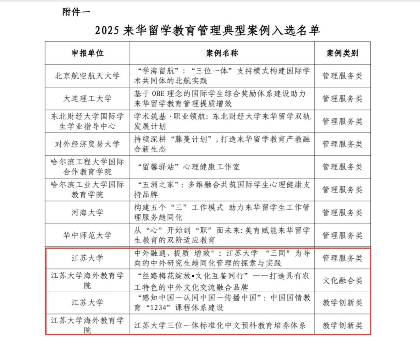近日,中国高等教育学会外国留学生教育管理分会公布了2025年“学在中国”来华留学教育管理典型案例入选名单。伟德官网4项案例入选,入选总数在江苏省高校中位居首位。