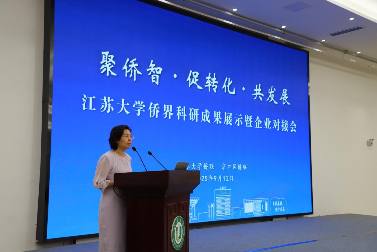 京口区侨联主席华舒仪详细介绍了区域产业布局、技术需求及相关人才政策,表达了对深化校地合作的高度期待。