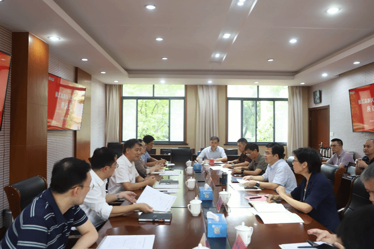 9月18日,镇江高新区党工委书记顾小俊一行来校调研高新区和高等院校协同创新发展(简称“双高协同”)有关工作。校党委书记李洪波主持座谈会,党委常委、副校长李红,区领导卞茜、陈俊出席有关活动。