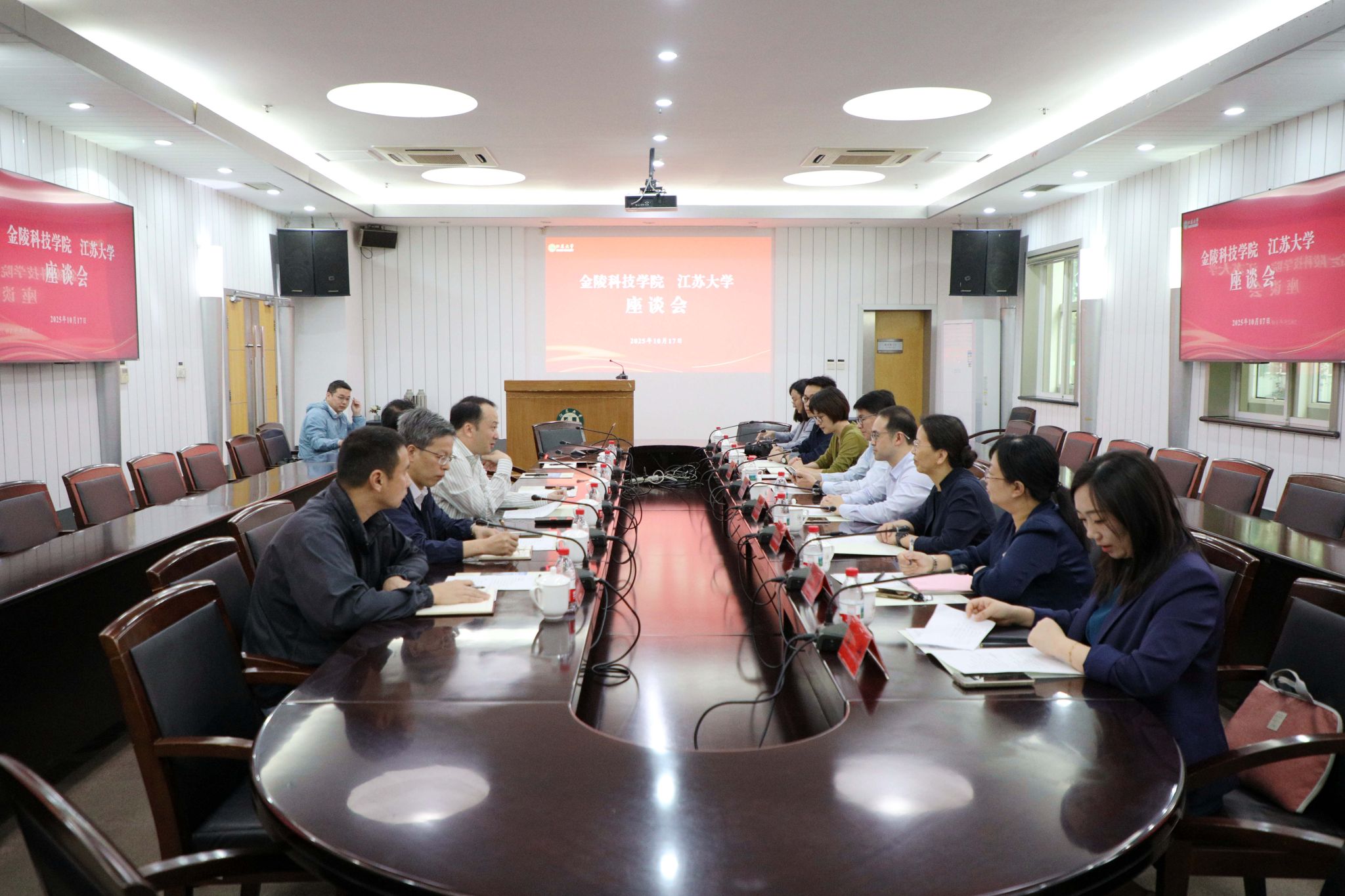 10月17日,金陵科技学院党委副书记单晓峰一行来校调研,校党委常委、副校长任旭东接待了来访一行。