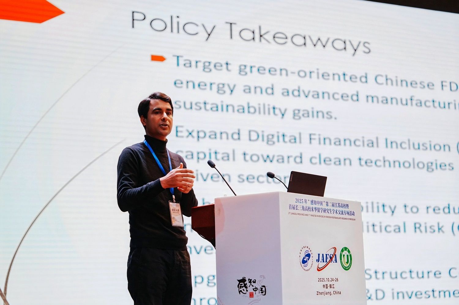 焦伟介绍了江苏的基本情况和江苏高等教育的显著优势,指出今年的活动与往年相比,不仅提高了多元性,将学术交流与国情教育深度结合,还扩大了学术朋友圈,吸引了更多长三角地区高校留学研究生参与。他希望来华留学生通过思想碰撞推动学术进步,深化文化交流,促进中外友谊,在互学互鉴中实现共同提升。